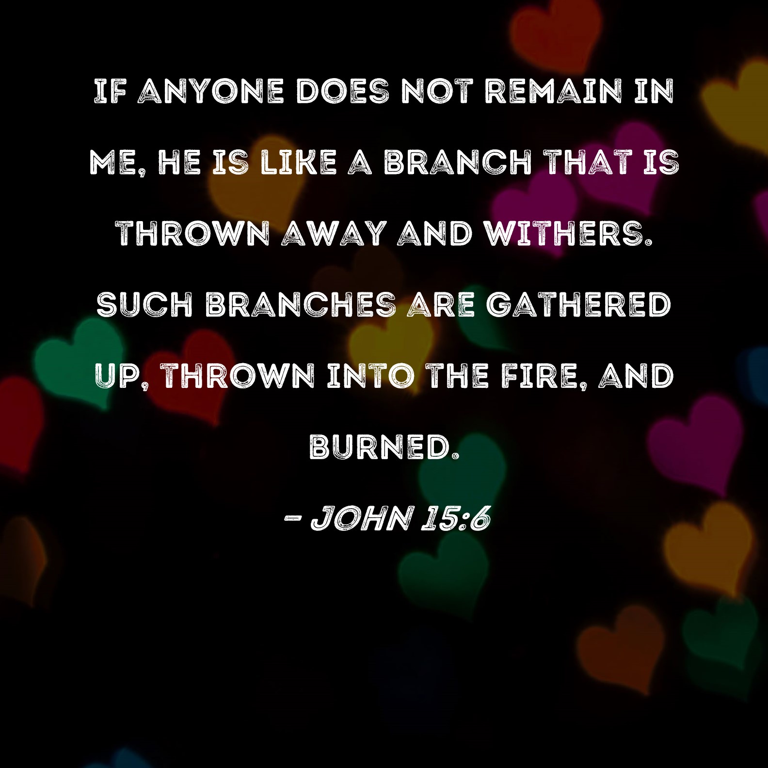 John 15:6 If anyone does not remain in Me, he is like a branch that is thrown away and withers. Such branches are gathered up, thrown into the fire, and burned.