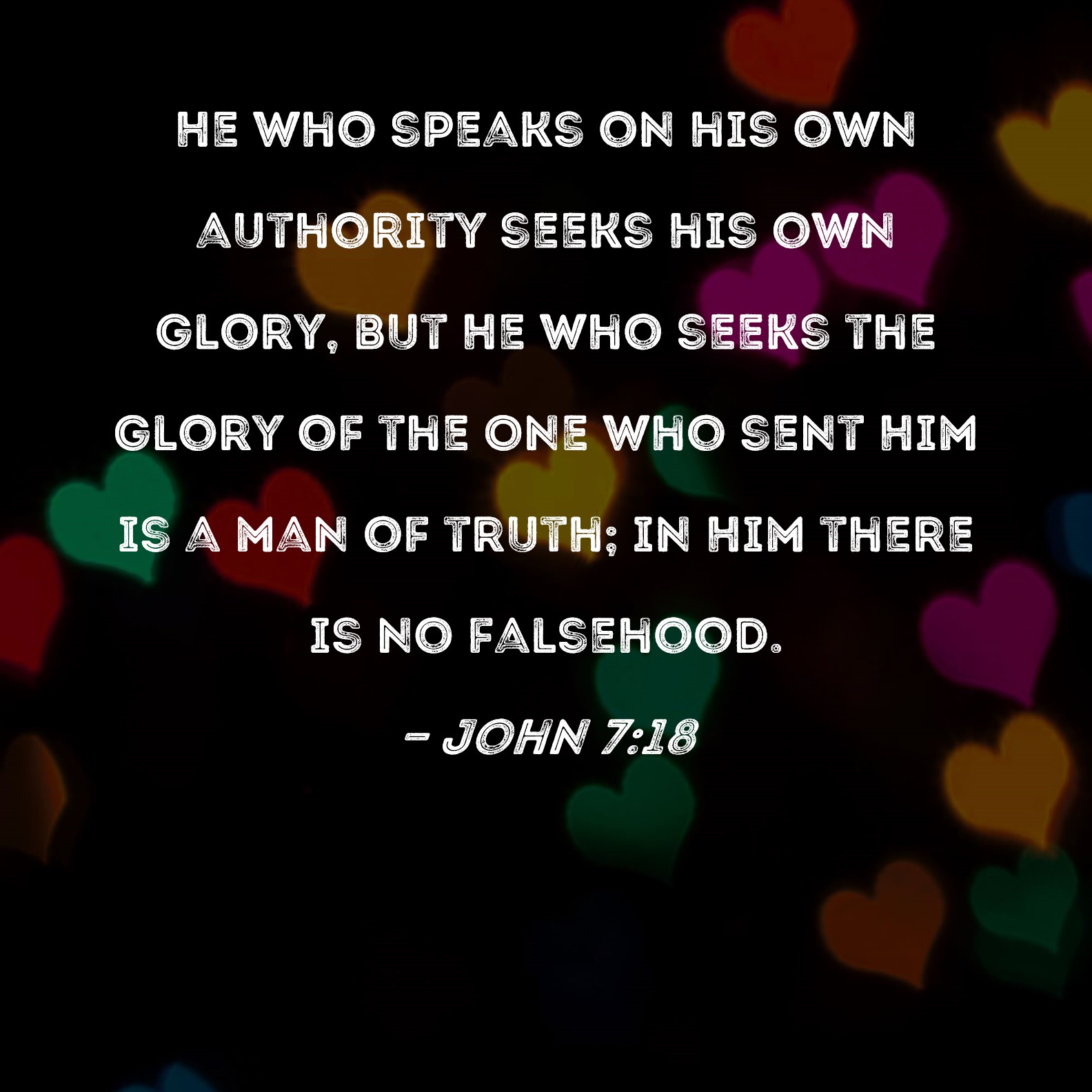 John 7:18 He who speaks on his own authority seeks his own glory, but He who seeks the glory of the One who sent Him is a man of truth; in Him there is no falsehood.