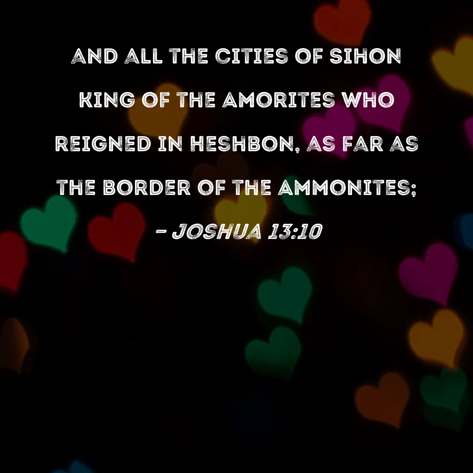 Joshua 13:10 and all the cities of Sihon king of the Amorites who reigned in Heshbon, as far as the border of the Ammonites;