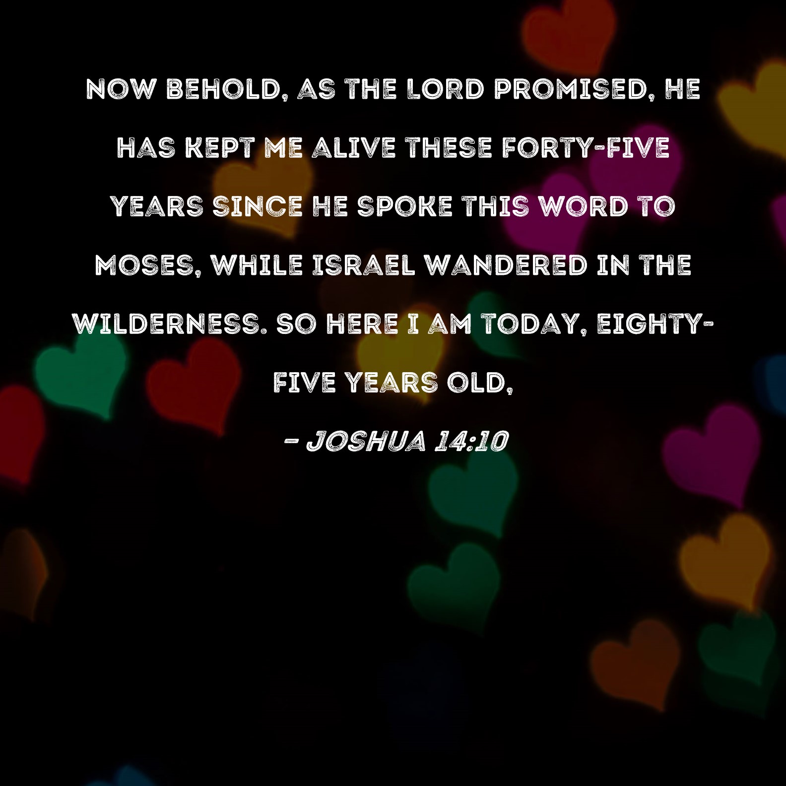 WEB:  “Now, behold, Yahweh has kept me alive, as he spoke, these forty-five years, from the time that Yahweh spoke this word to Moses, while Israel walked in the wilderness. Now, behold, I am eighty-five years old, today.