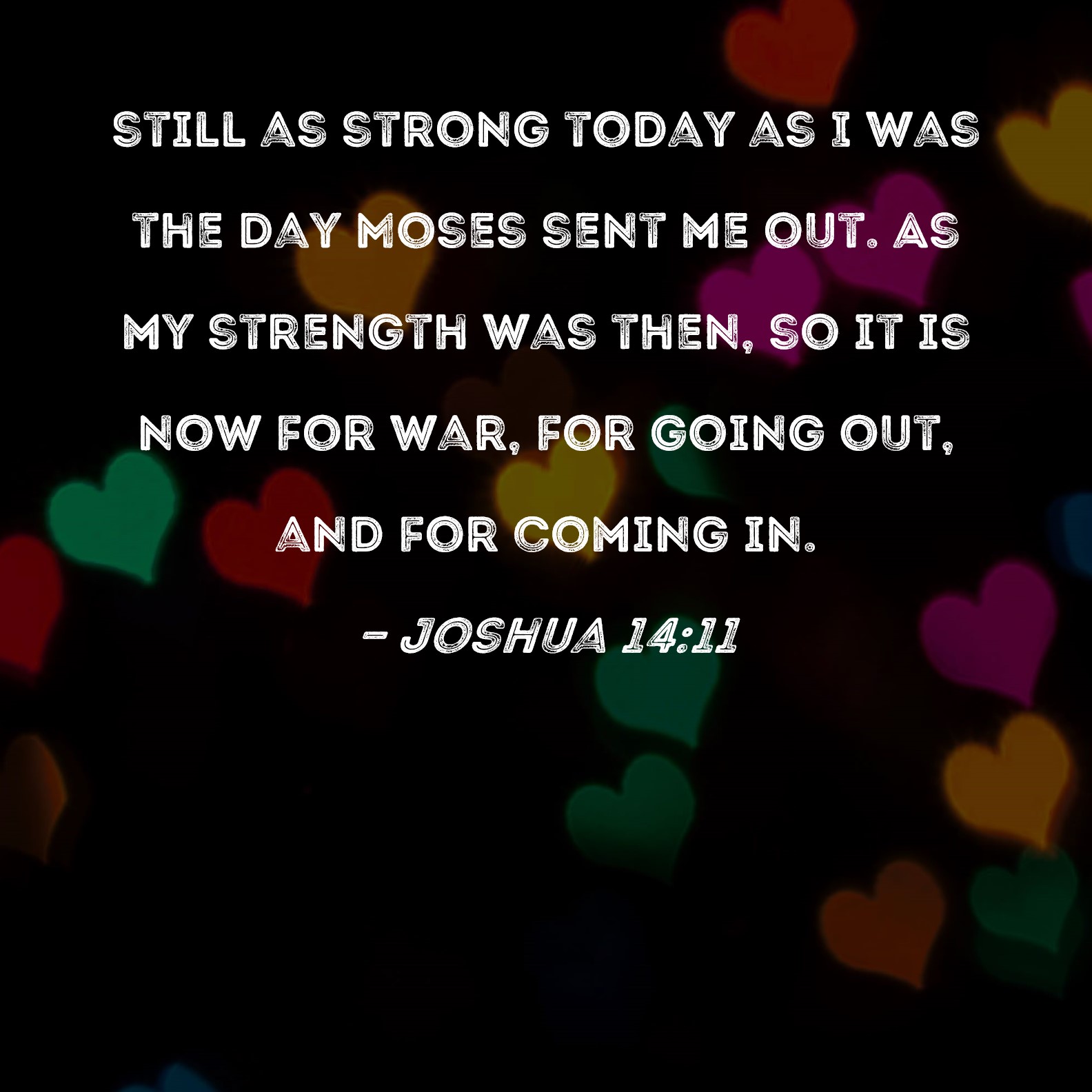 Joshua 14:11 still as strong today as I was the day Moses sent me out. As my strength was then, so it is now for war, for going out, and for coming in.