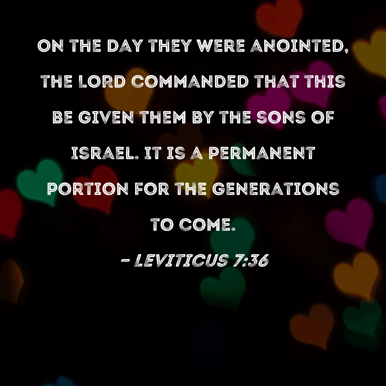 Leviticus 7:36 On the day they were anointed, the LORD commanded that this be given them by the sons of Israel. It is a permanent portion for the generations to come.