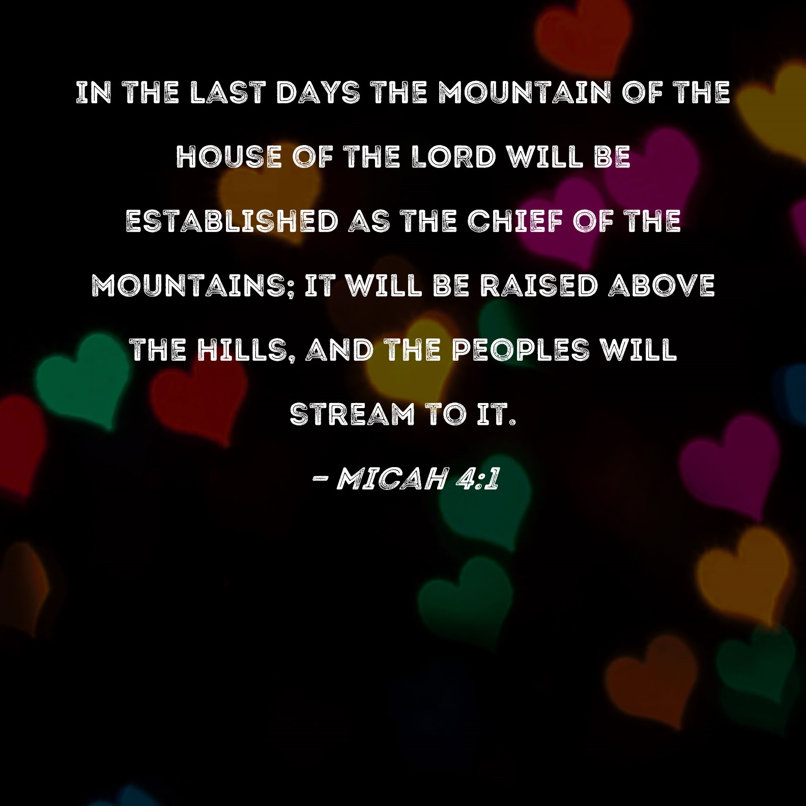 Micah 4:1 In the last days the mountain of the house of the LORD will be established as the chief of the mountains; it will be raised above the hills, and the peoples will stream to it.
