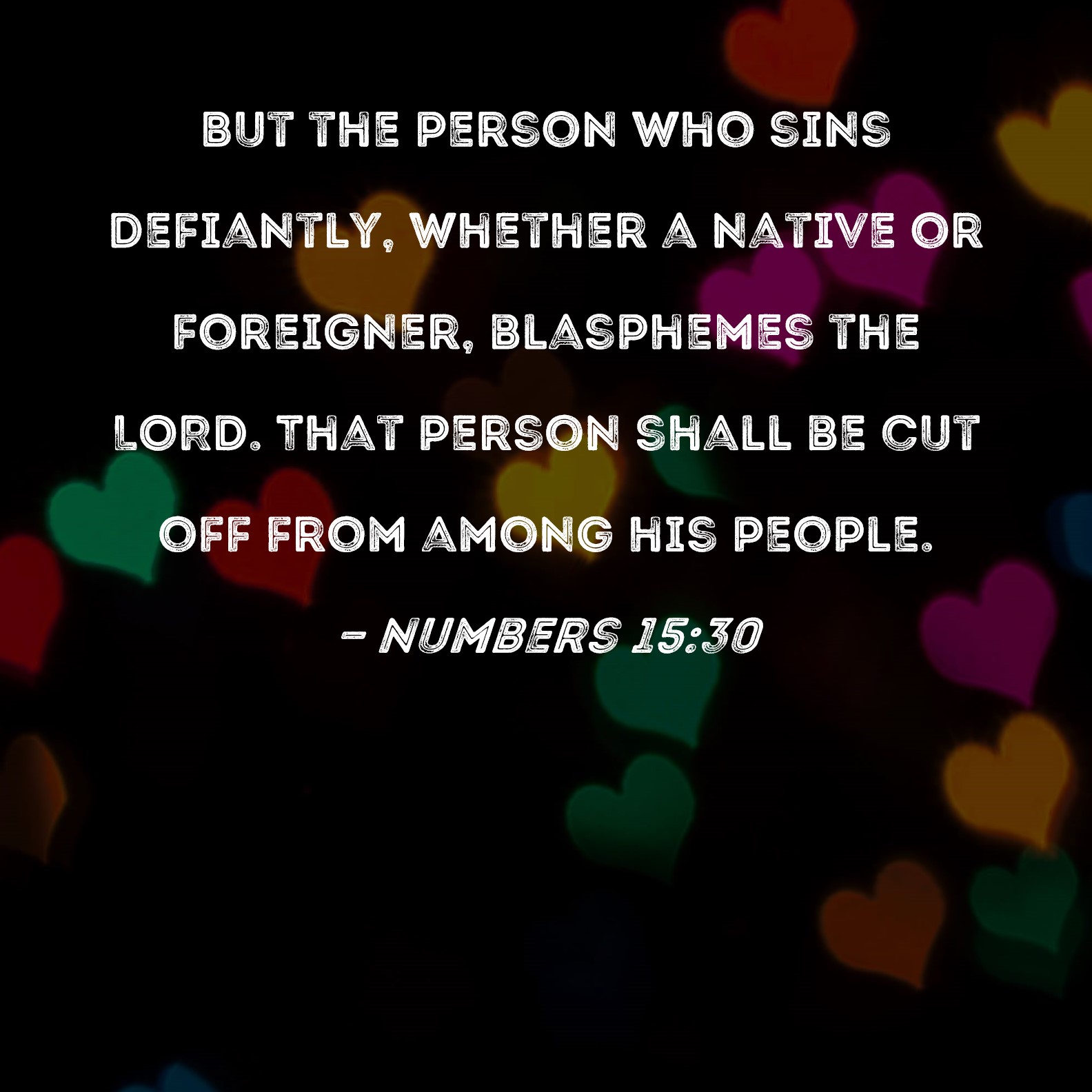 Numbers 15:30 But the person who sins defiantly, whether a native or foreigner, blasphemes the LORD. That person shall be cut off from among his people.