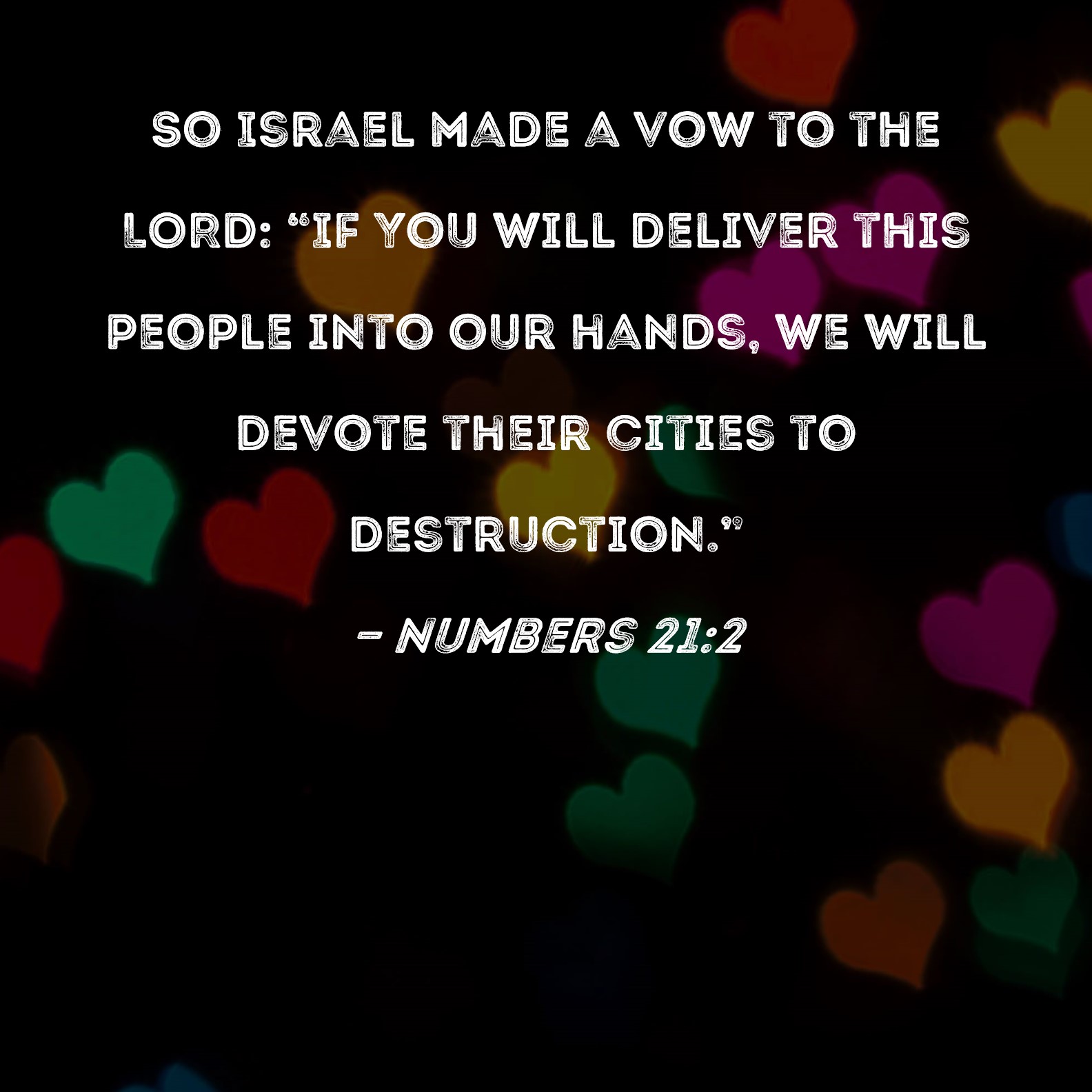 Numbers 21:2 So Israel made a vow to the LORD: "If You will deliver this people into our hands, we will devote their cities to destruction."