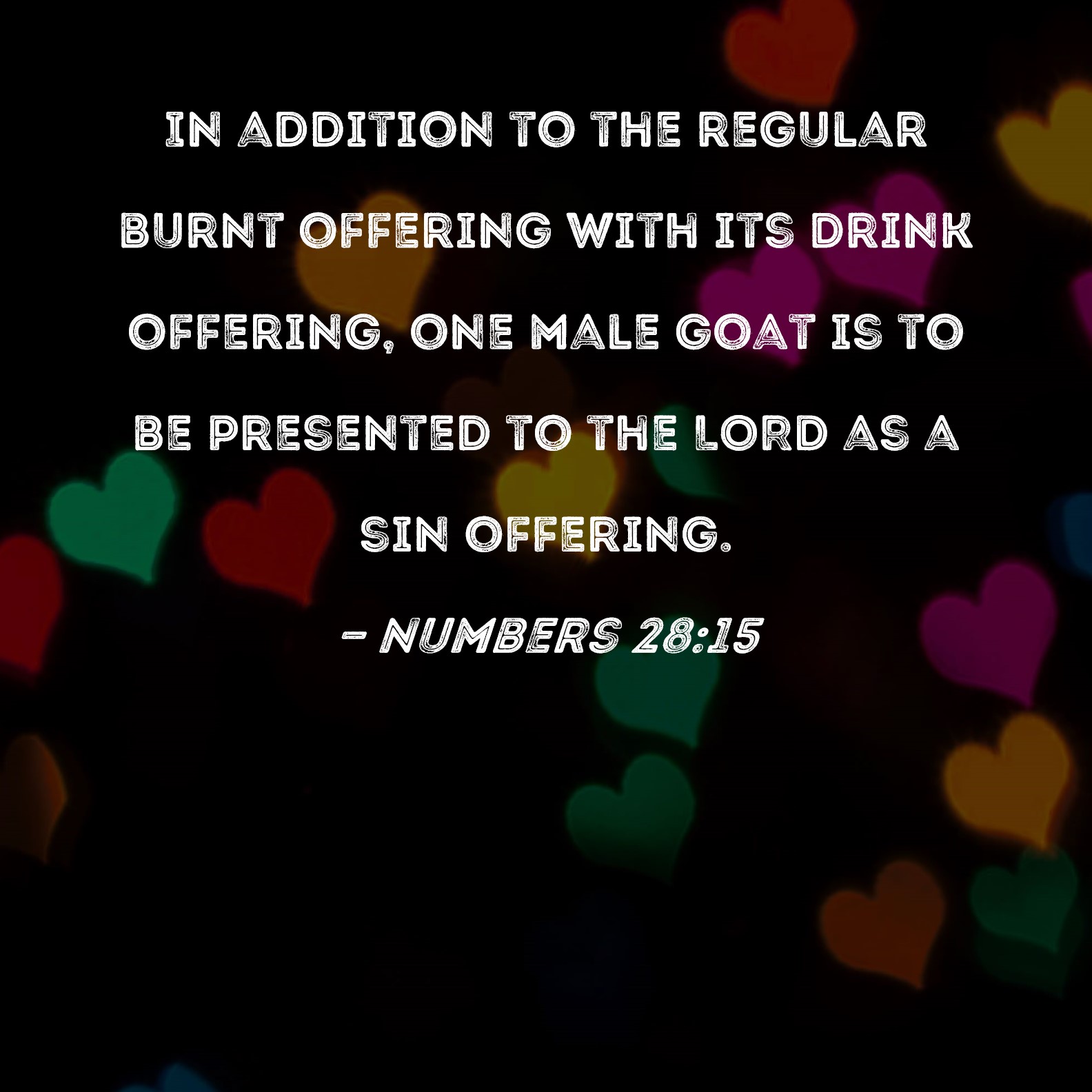 Numbers 28:15 In addition to the regular burnt offering with its drink offering, one male goat is to be presented to the LORD as a sin offering.
