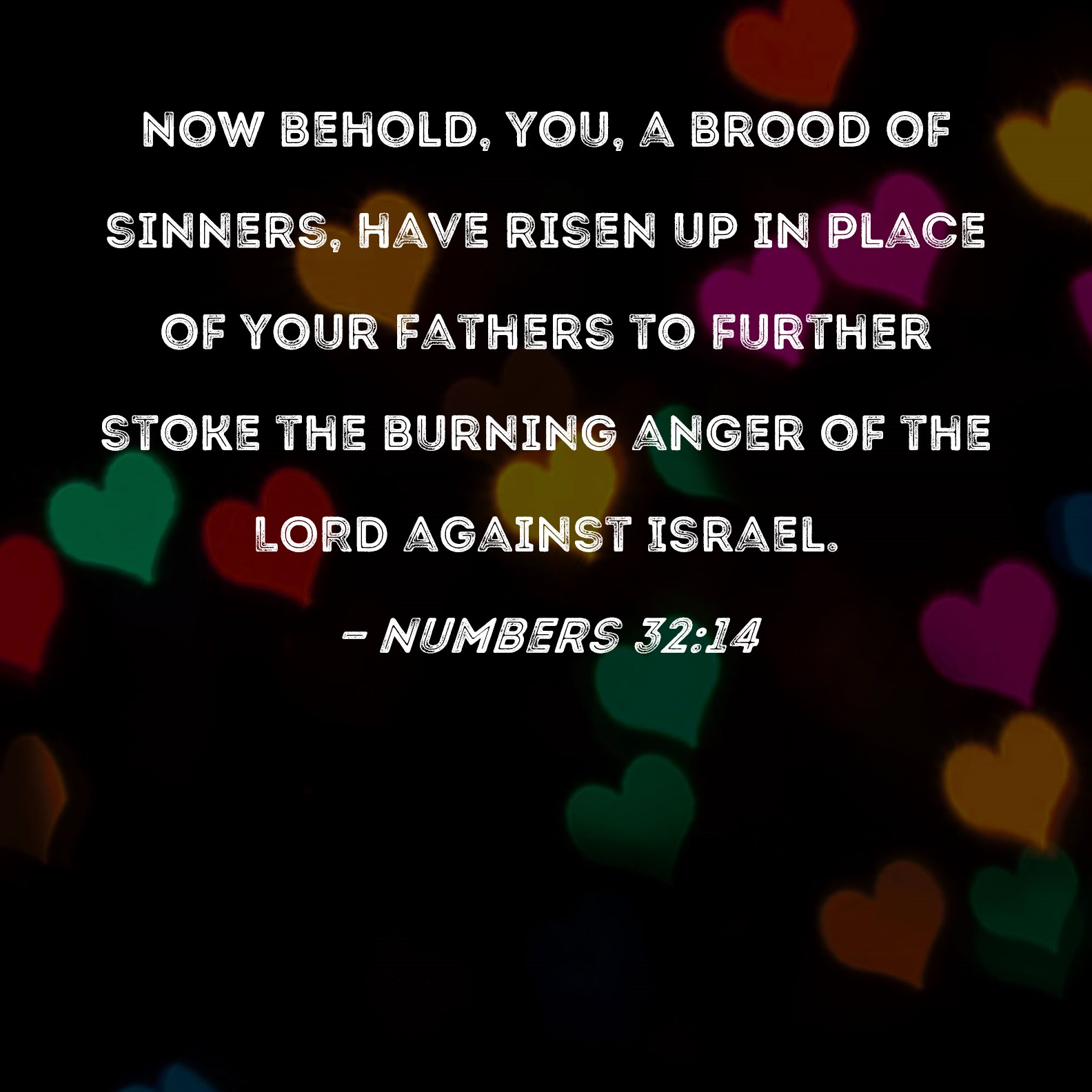 Numbers 32:14 Now behold, you, a brood of sinners, have risen up in place of your fathers to further stoke the burning anger of the LORD against Israel.