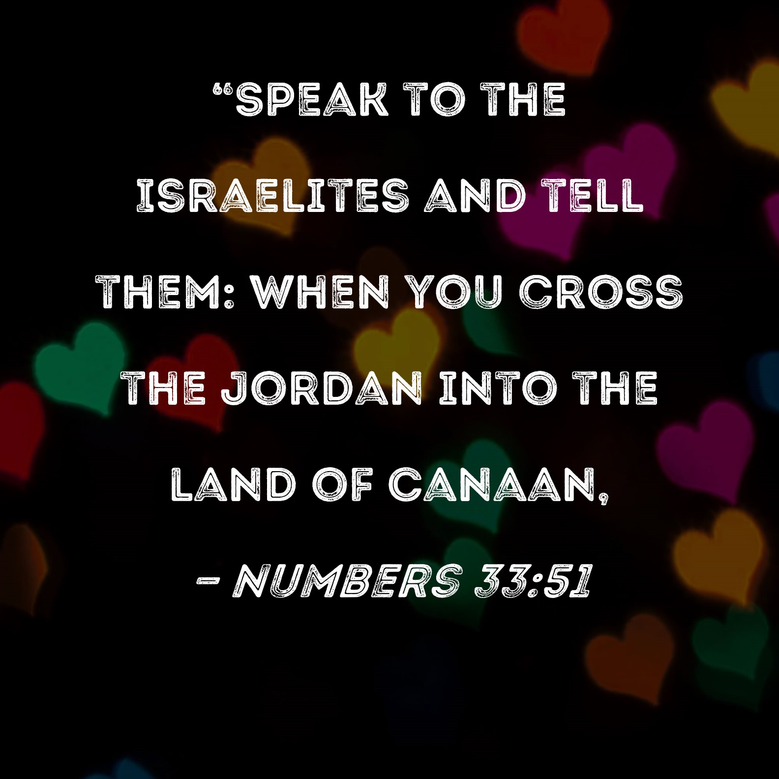 Numbers 33:51 "Speak to the Israelites and tell them: When you cross the Jordan into the land of Canaan,
