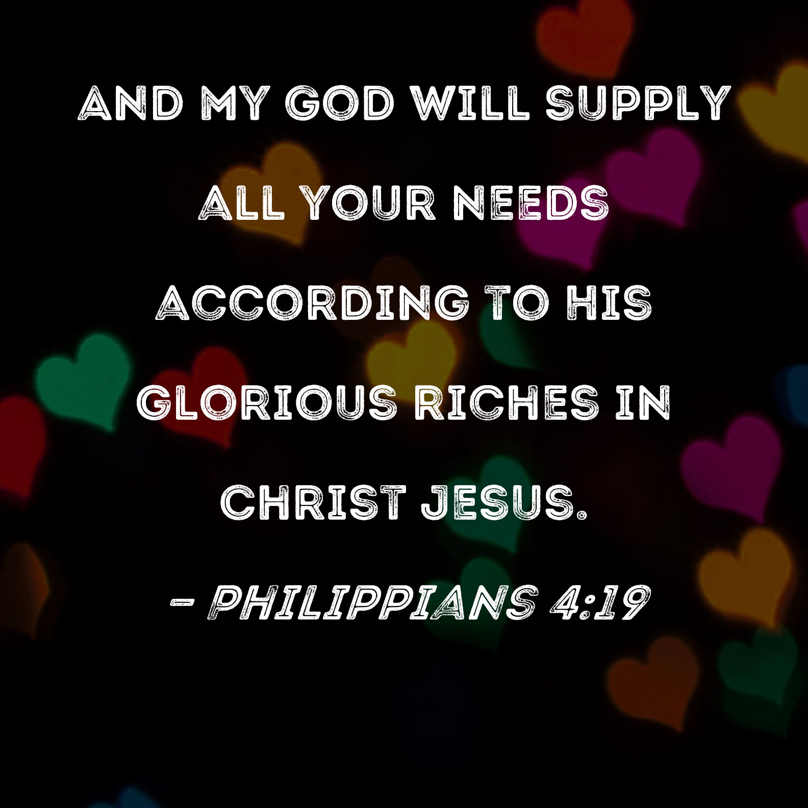 and my God shall supply all your need, according to His riches in glory in Christ Jesus;