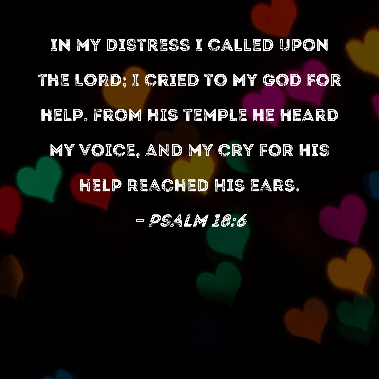 Psalm 18:6 In my distress I called upon the LORD; I cried to my God for help. From His temple He heard my voice, and my cry for His help reached His ears.