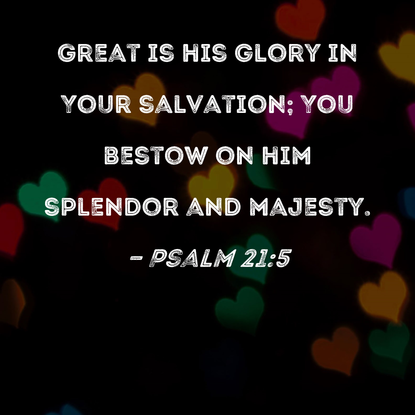 Psalm 21:5 Great is his glory in Your salvation; You bestow on him splendor and majesty.