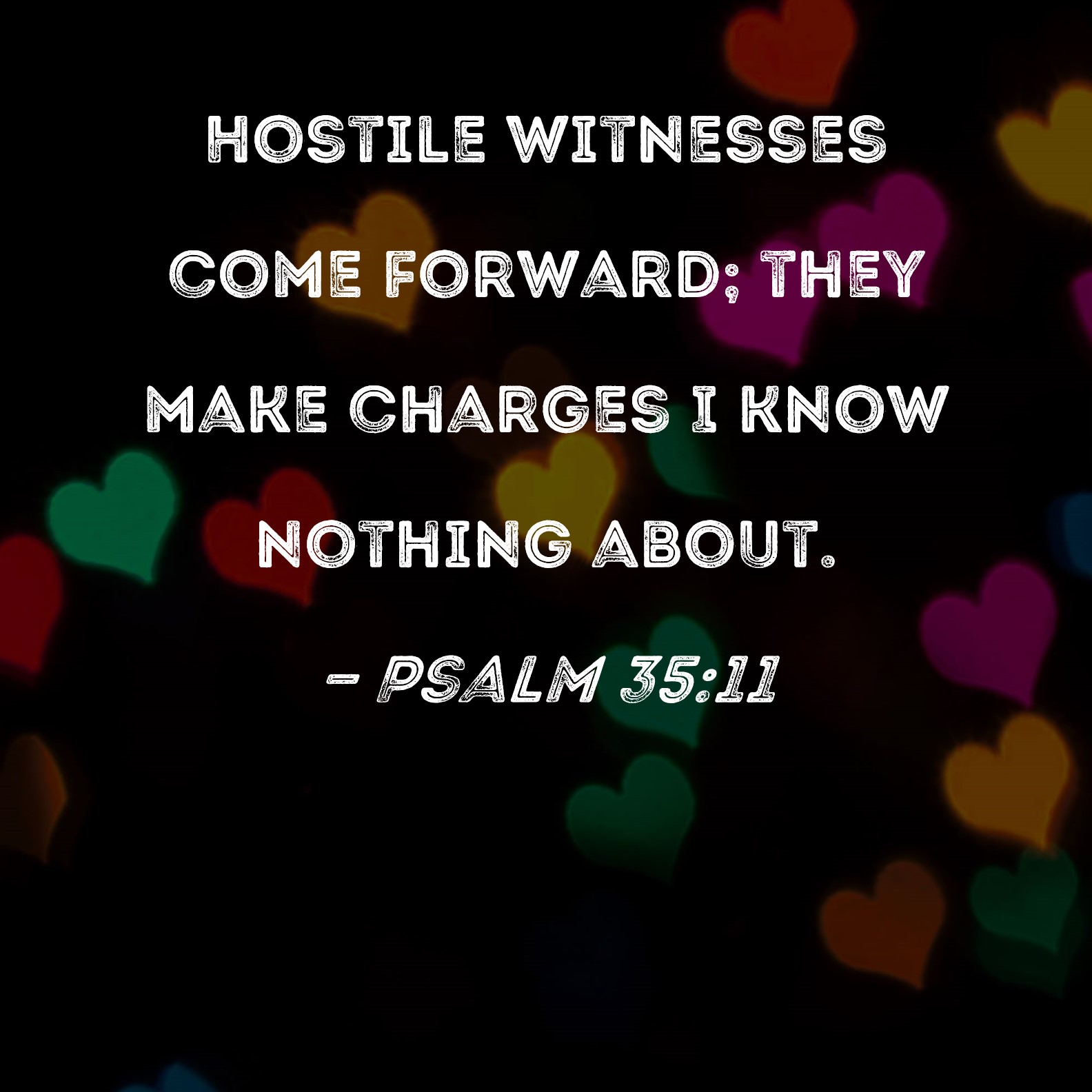 Psalm 35:11 Hostile witnesses come forward; they make charges I know nothing about.