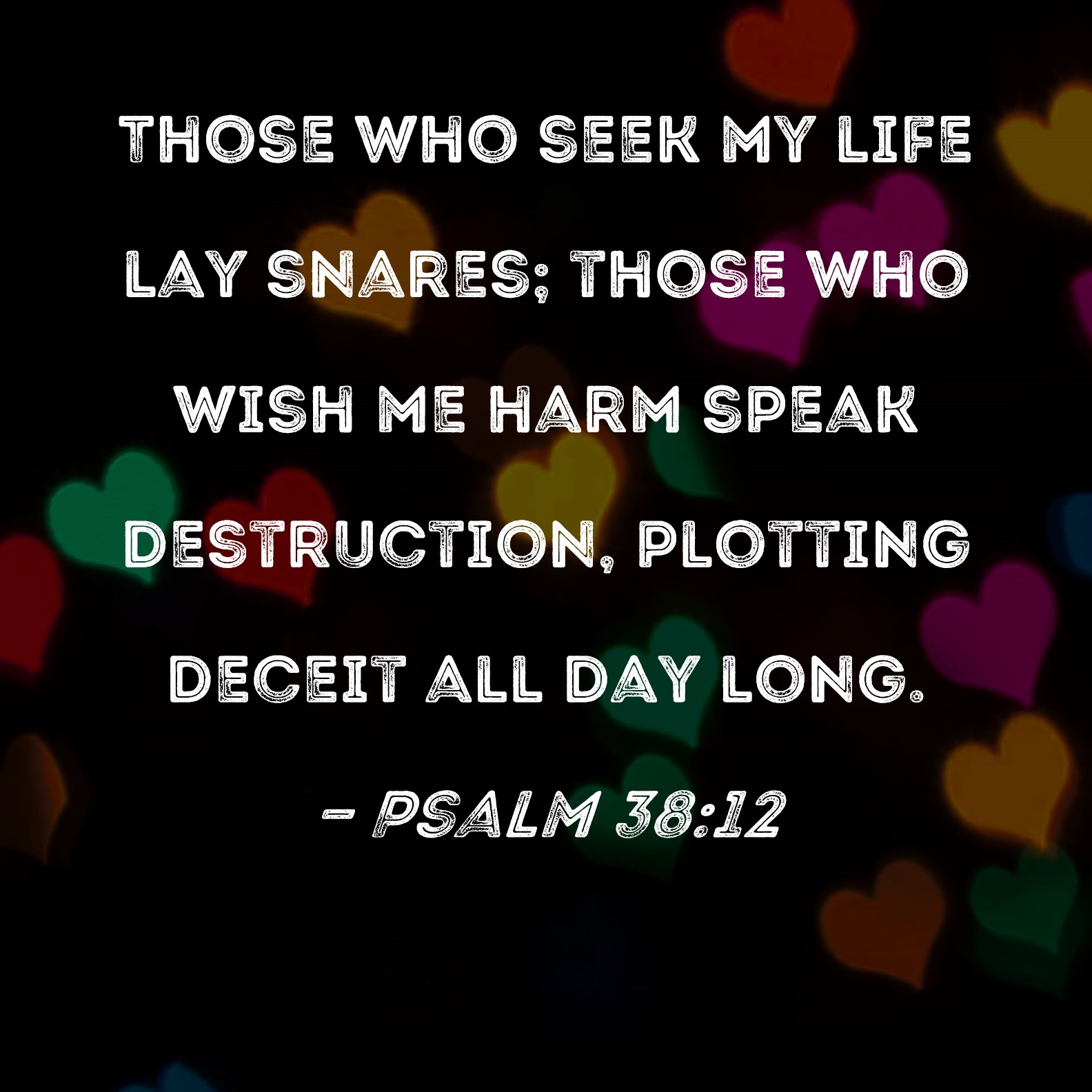 Psalm 38:12 Those who seek my life lay snares; those who wish me harm speak destruction, plotting deceit all day long.