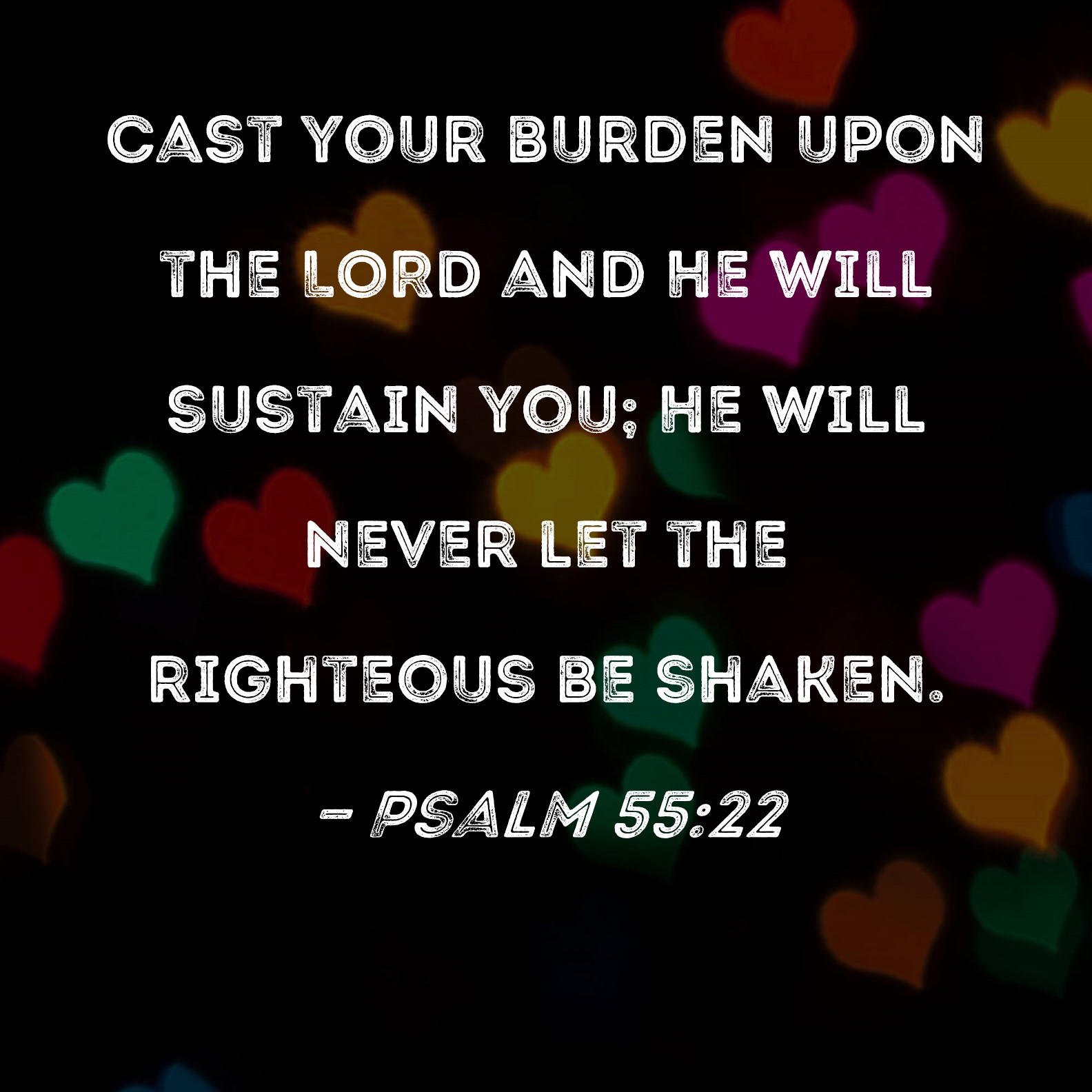 Psalm 55:22 Cast your burden upon the LORD and He will sustain you; He will never let the righteous be shaken.