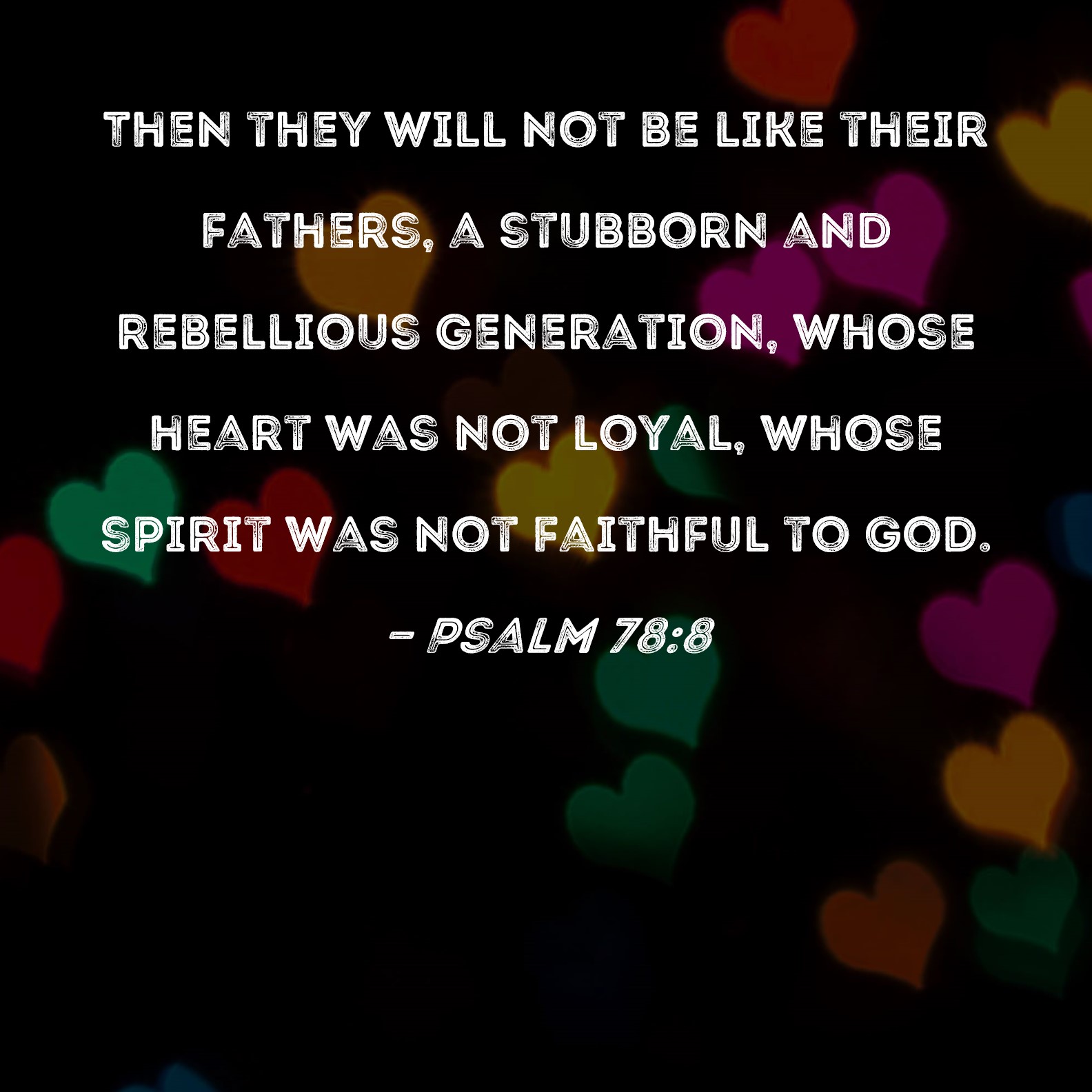 Psalm 78:8 Then they will not be like their fathers, a stubborn and rebellious generation, whose heart was not loyal, whose spirit was not faithful to God.