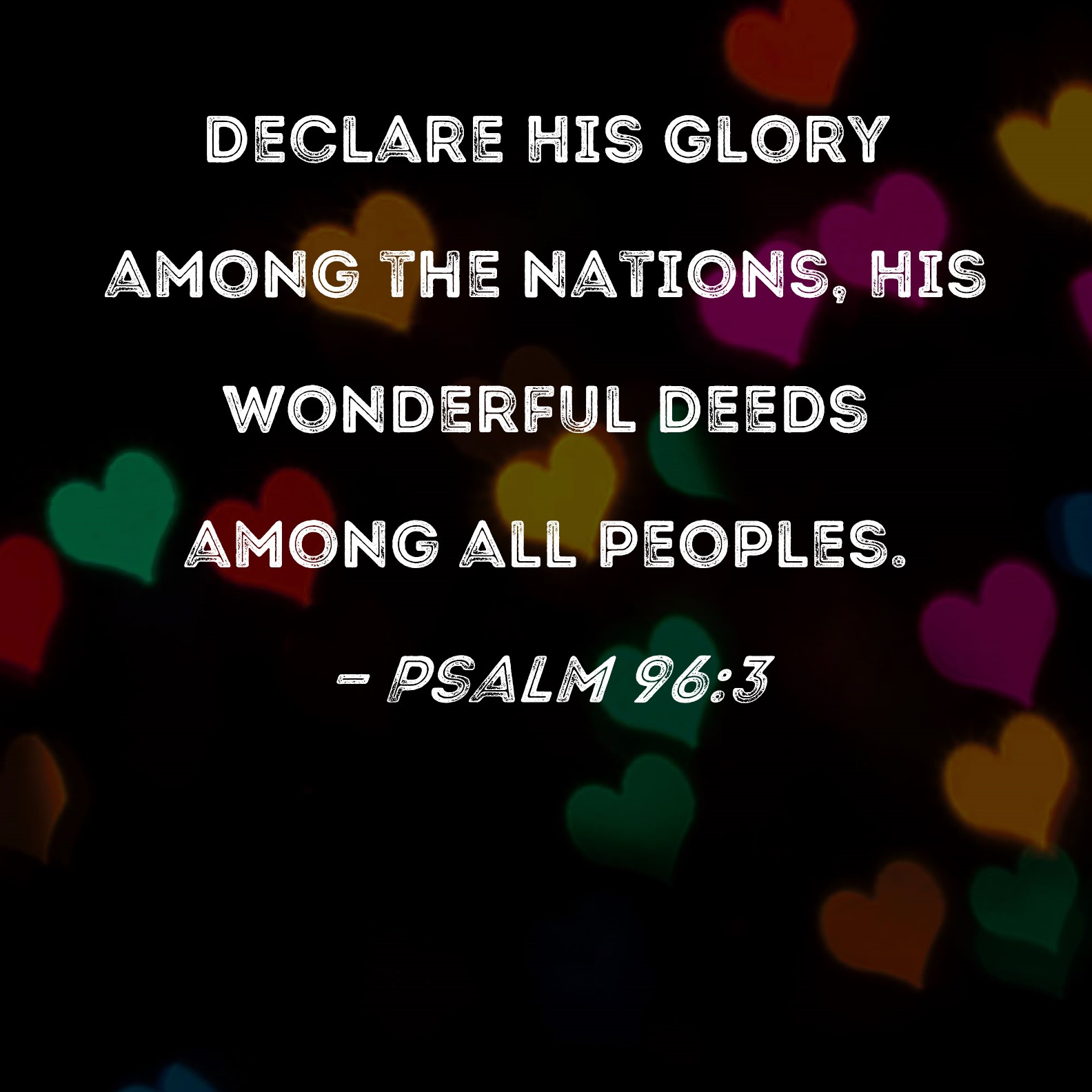 Psalm 96:3 Declare His glory among the nations, His wonderful deeds among all peoples.
