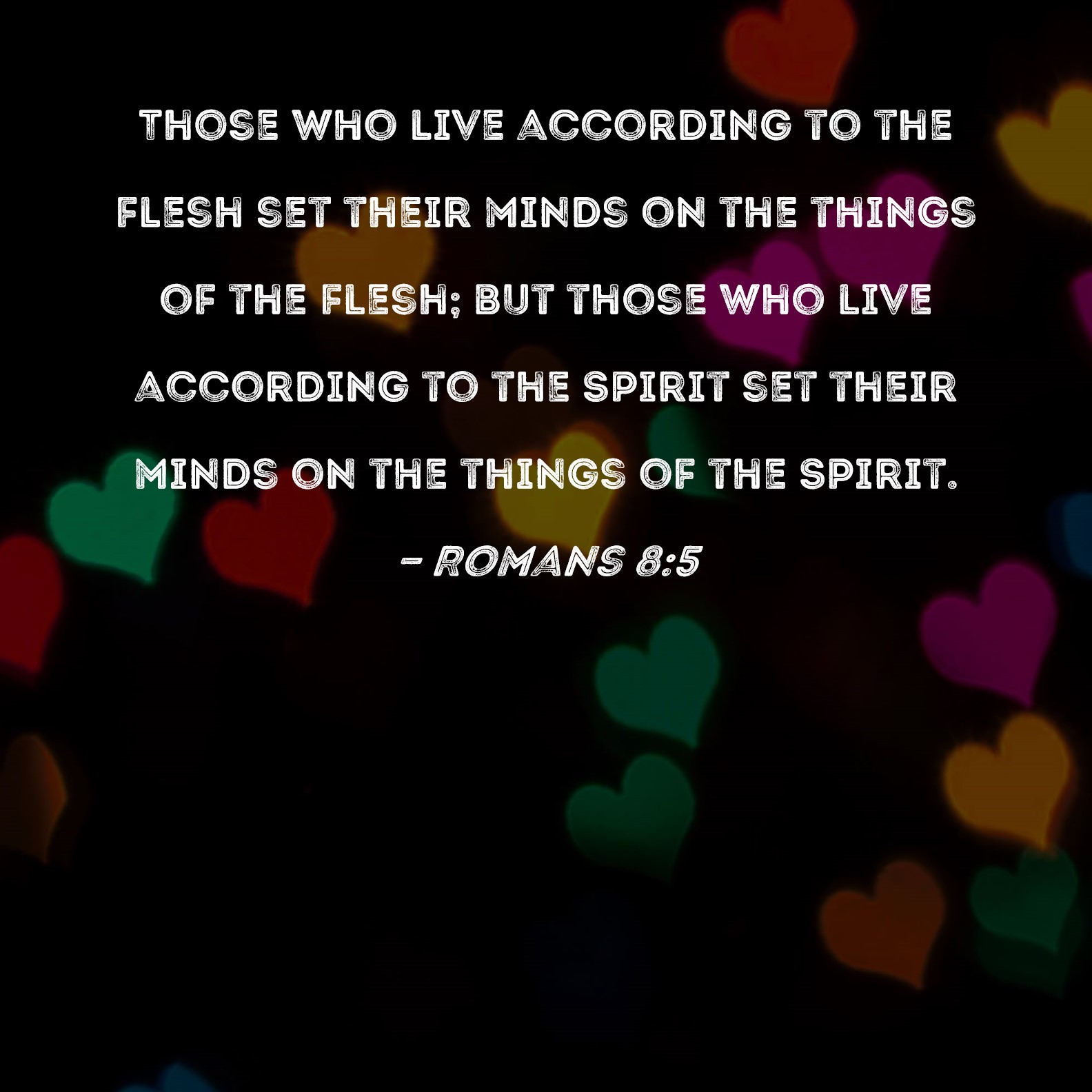 Romans 8:5 Those who live according to the flesh set their minds on the things of the flesh; but those who live according to the Spirit set their minds on the things of the Spirit.