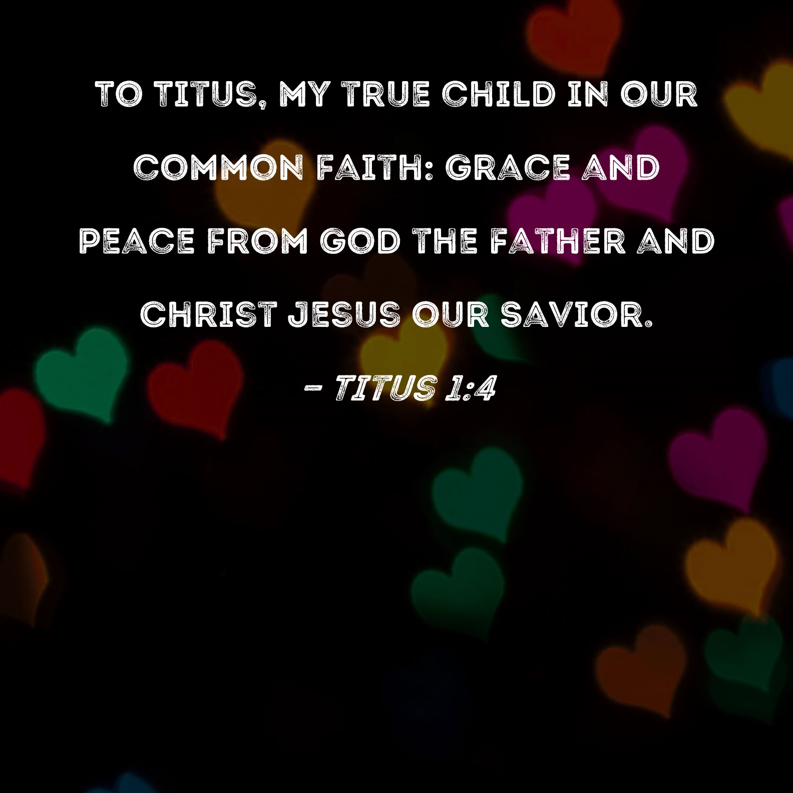 Titus 1:4 To Titus, my true child in our common faith: Grace and peace from God the Father and Christ Jesus our Savior.