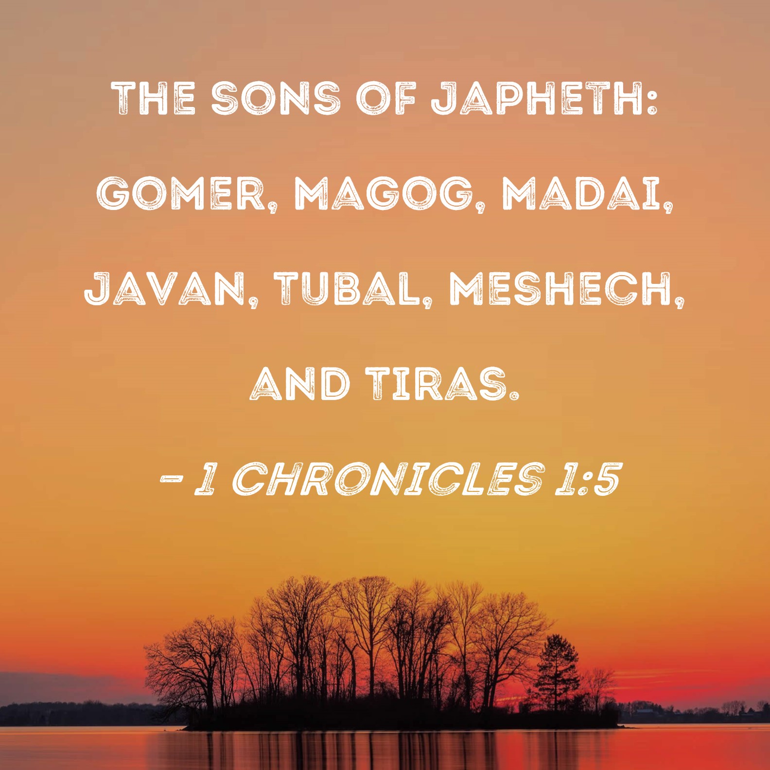 1 Chronicles 1:5 The sons of Japheth: Gomer, Magog, Madai, Javan, Tubal, Meshech, and Tiras.