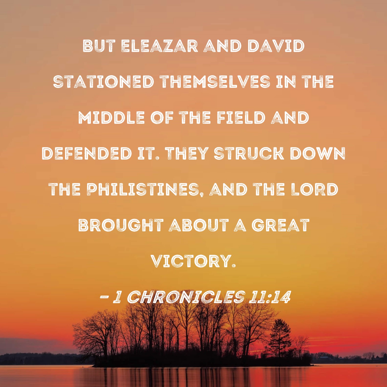 1 Chronicles 11:14 But Eleazar and David stationed themselves in the middle of the field and defended it. They struck down the Philistines, and the LORD brought about a great victory.