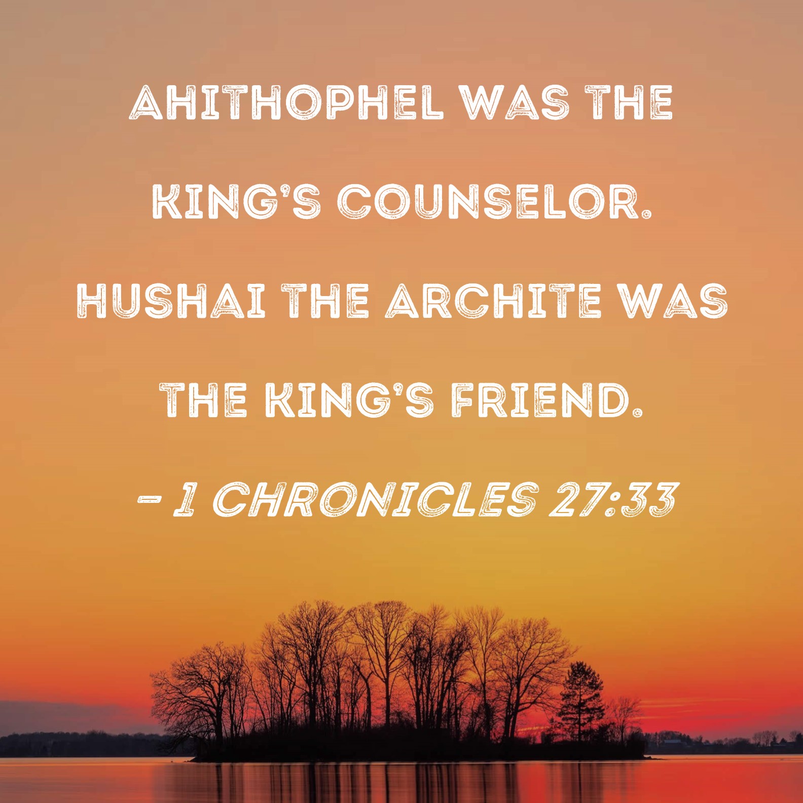 1 Chronicles 27:33 Ahithophel was the king's counselor. Hushai the Archite was the king's friend.