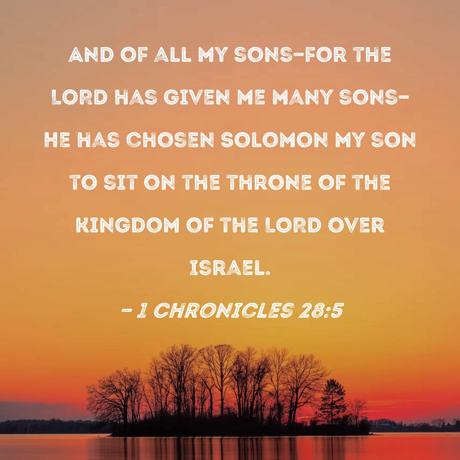 1 Chronicles 28:5 And of all my sons--for the LORD has given me many sons--He has chosen Solomon my son to sit on the throne of the kingdom of the LORD over Israel.