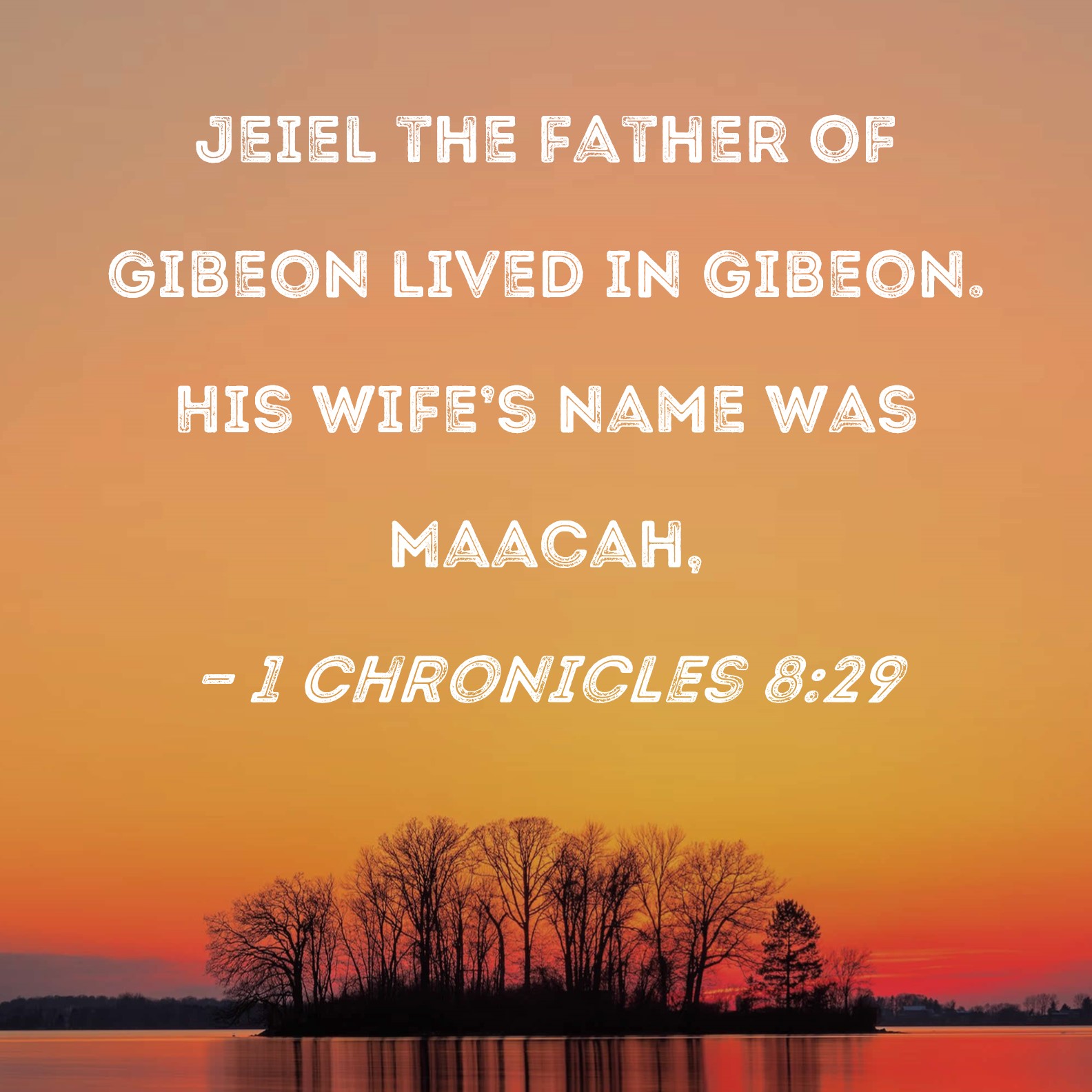 1 Chronicles 8:29 Jeiel the father of Gibeon lived in Gibeon. His wife's name was Maacah,