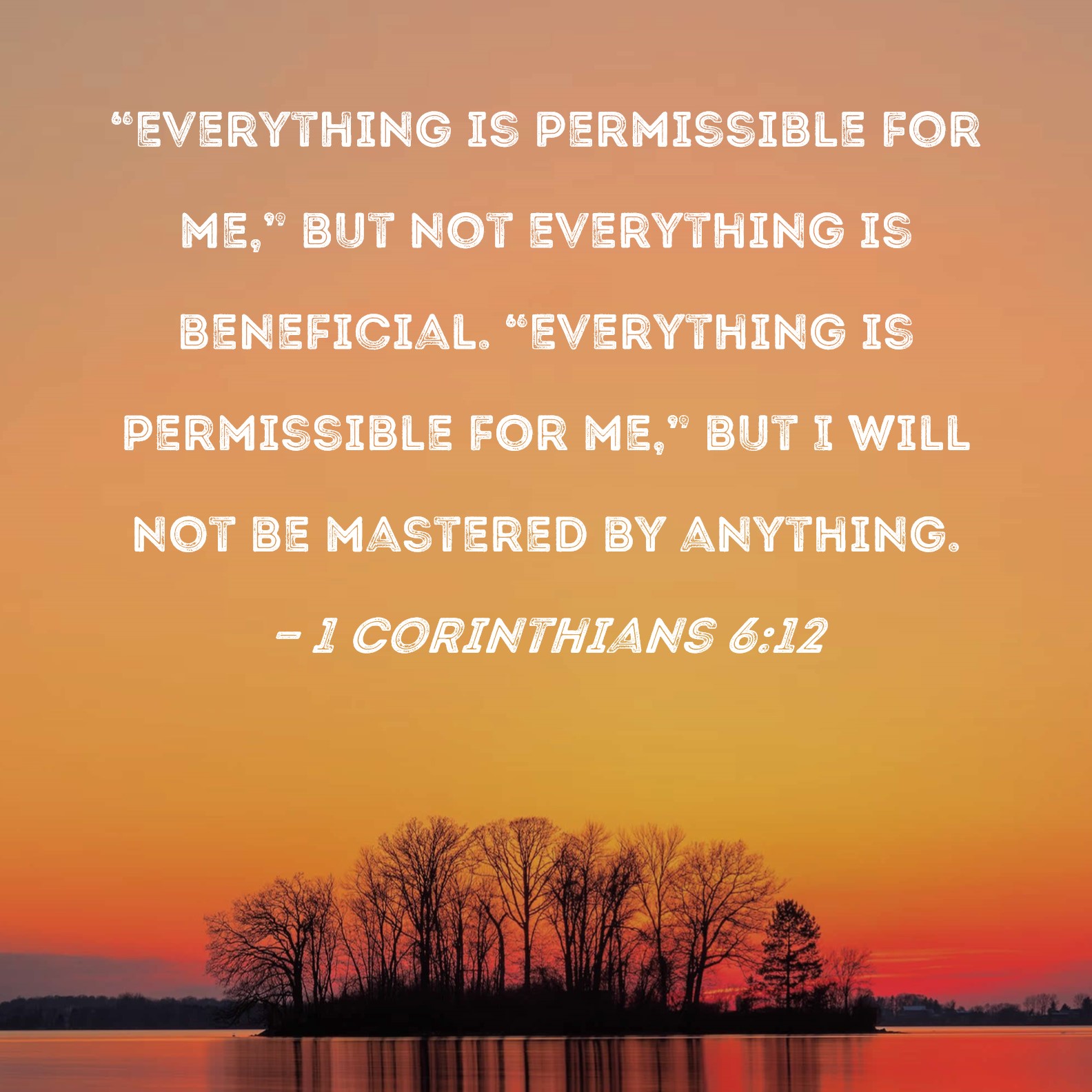 1 Corinthians 6:12 "Everything is permissible for me," but not everything is beneficial. "Everything is permissible for me," but I will not be mastered by anything.