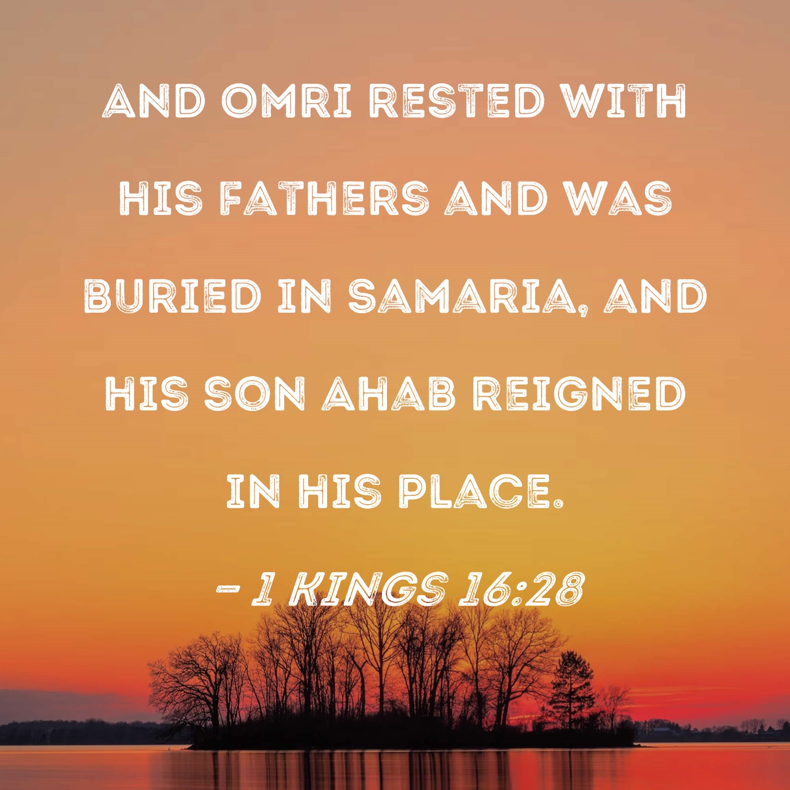 1 Kings 16:28 And Omri rested with his fathers and was buried in Samaria, and his son Ahab reigned in his place.