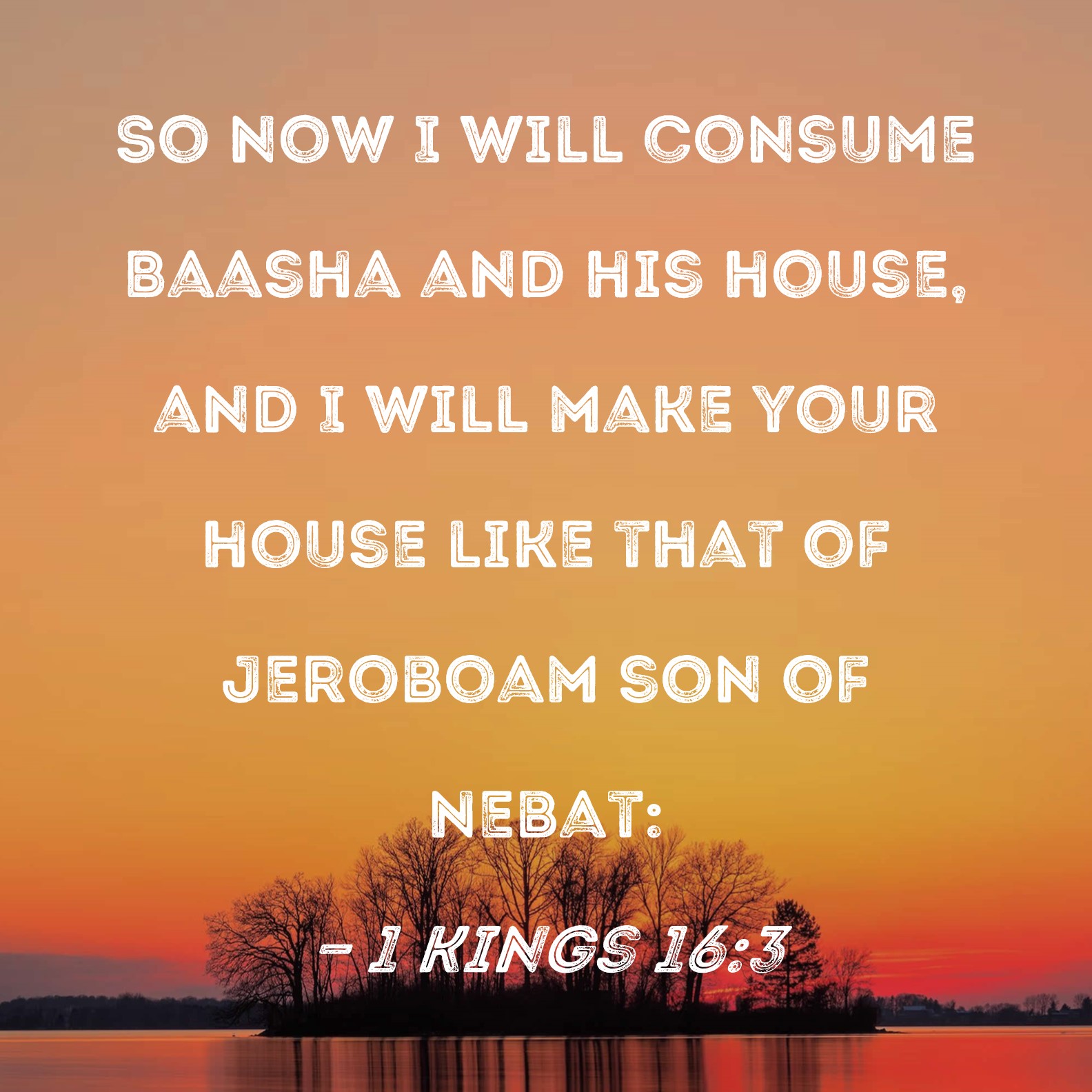 1 Kings 16:3 So now I will consume Baasha and his house, and I will make your house like that of Jeroboam son of Nebat:
