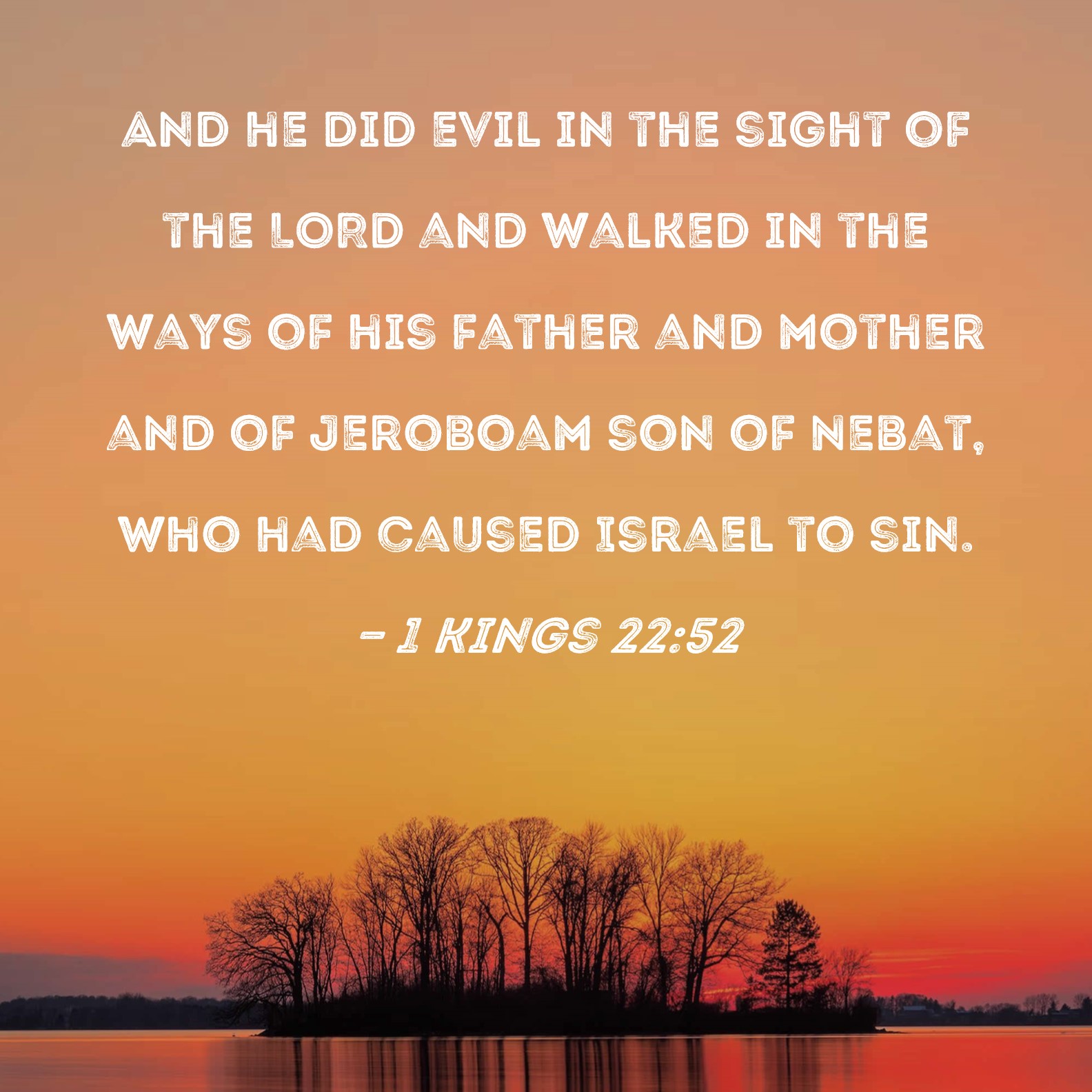 1 Kings 22:52 And he did evil in the sight of the LORD and walked in the ways of his father and mother and of Jeroboam son of Nebat, who had caused Israel to sin.