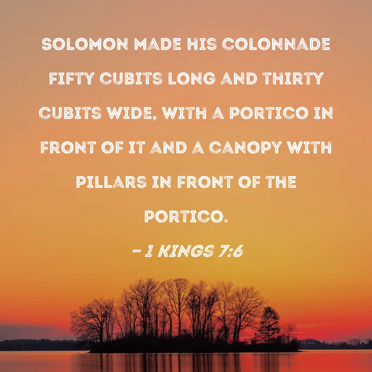 1 Kings 7:6 Solomon made his colonnade fifty cubits long and thirty cubits wide, with a portico in front of it and a canopy with pillars in front of the portico.
