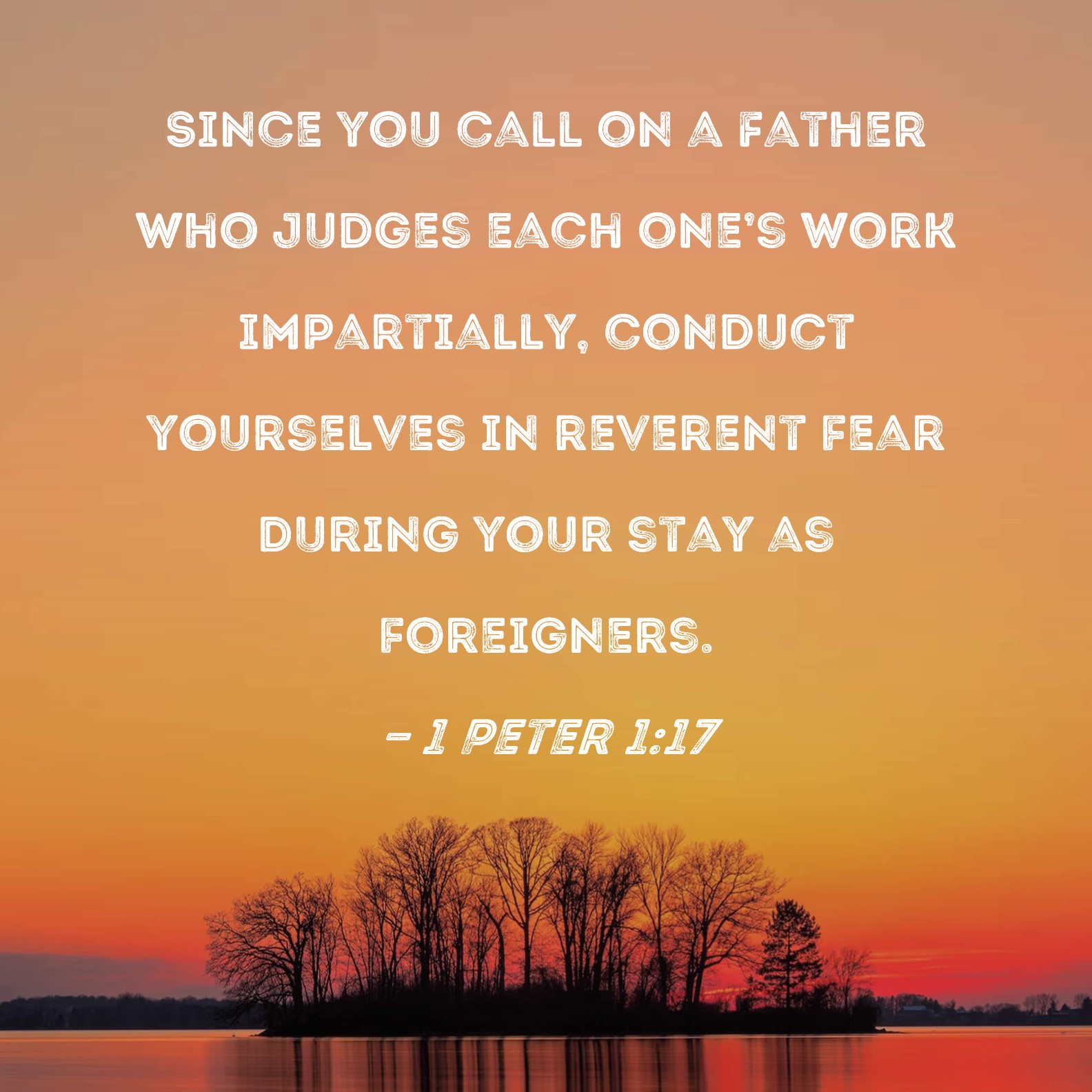 1 Peter 1:17 Since you call on a Father who judges each one's work impartially, conduct yourselves in reverent fear during your stay as foreigners.
