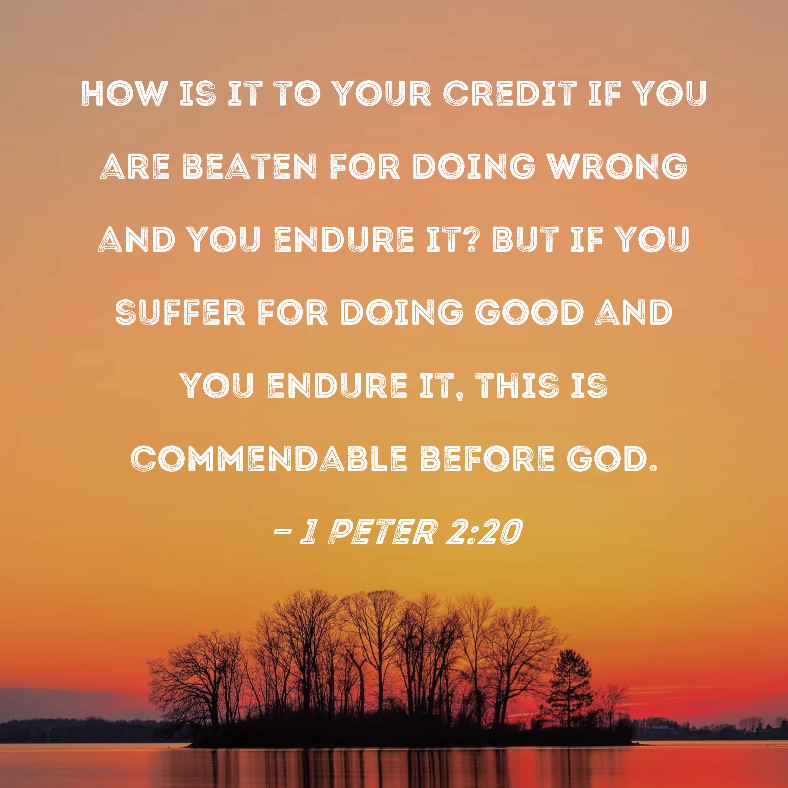 1 Peter 2:20 How is it to your credit if you are beaten for doing wrong and you endure it? But if you suffer for doing good and you endure it, this is commendable before God.