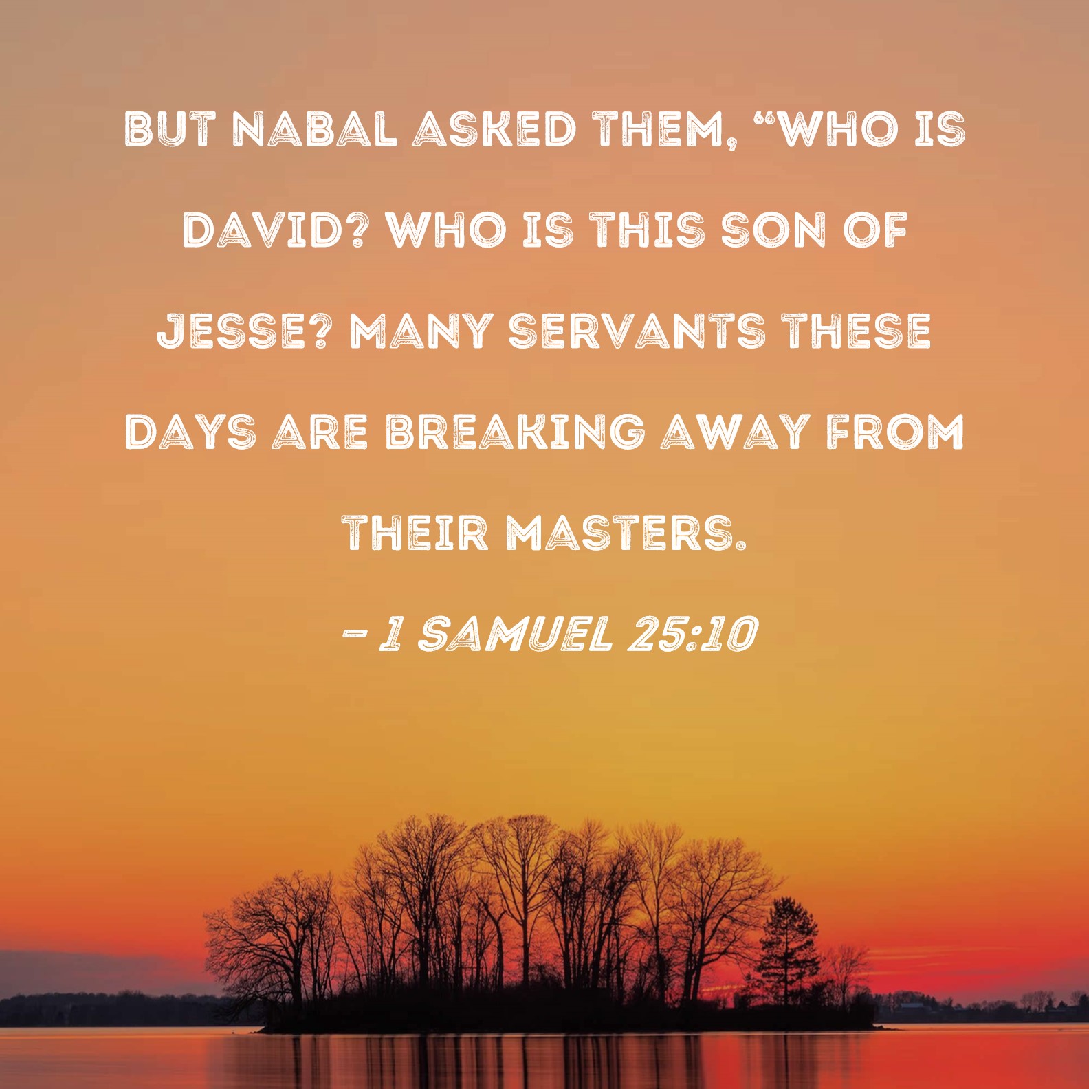 1 Samuel 25:10 But Nabal asked them, "Who is David? Who is this son of Jesse? Many servants these days are breaking away from their masters.