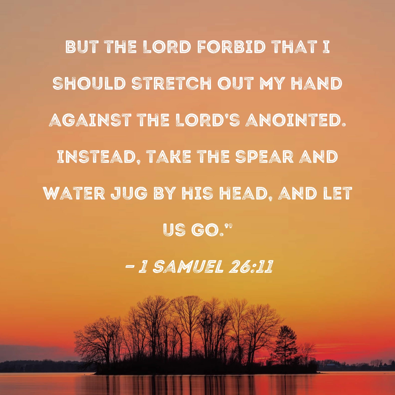 1 Samuel 26:11 But the LORD forbid that I should stretch out my hand against the LORD's anointed. Instead, take the spear and water jug by his head, and let us go."