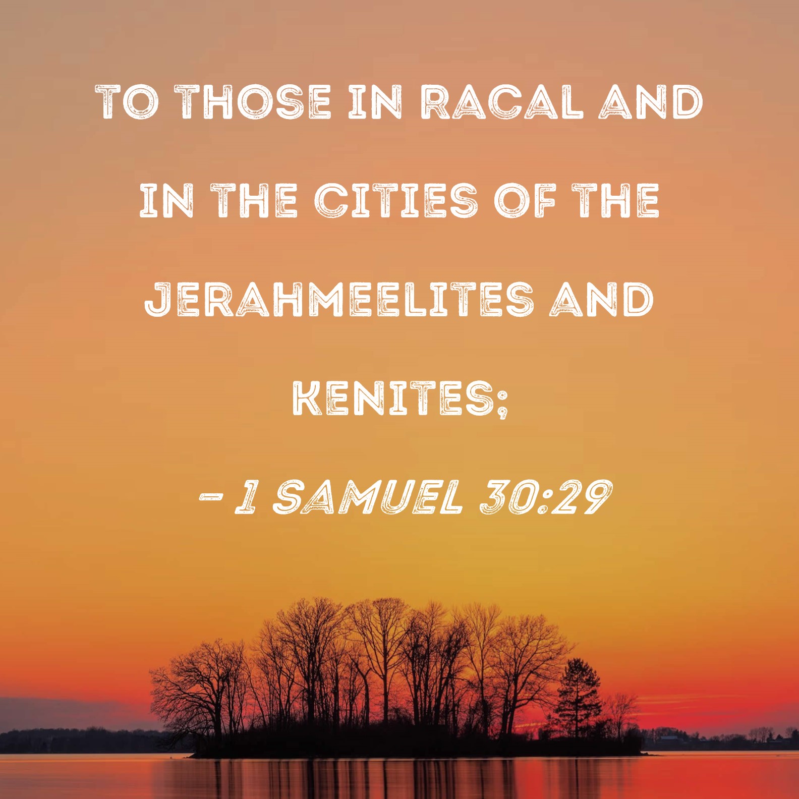 1 Samuel 30:29 to those in Racal and in the cities of the Jerahmeelites and Kenites;