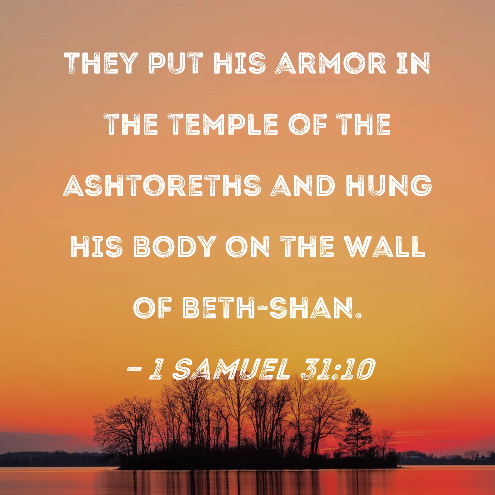 1 Samuel 31:10 They put his armor in the temple of the Ashtoreths and hung his body on the wall of Beth-shan.