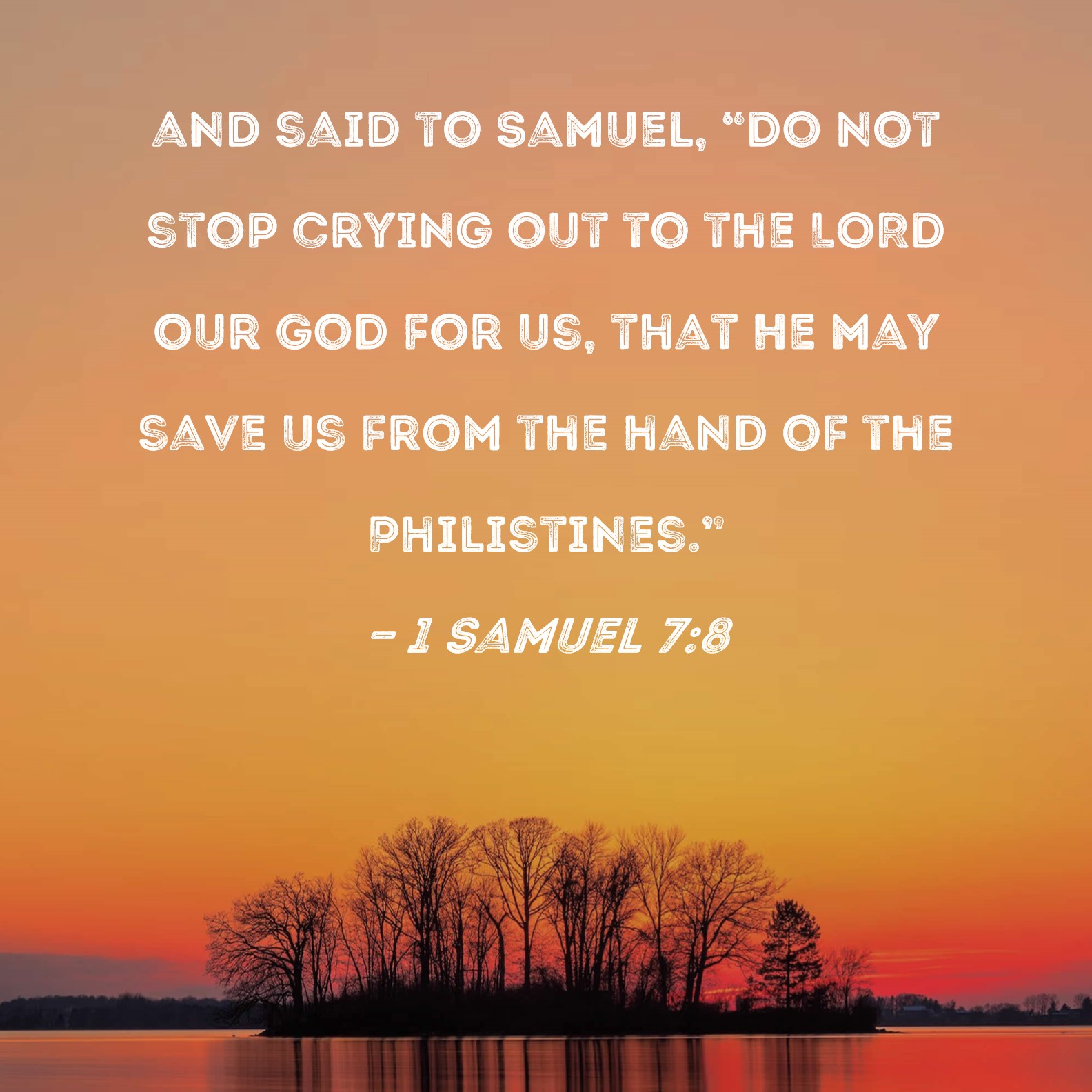 1 Samuel 7:8 and said to Samuel, "Do not stop crying out to the LORD our God for us, that He may save us from the hand of the Philistines."