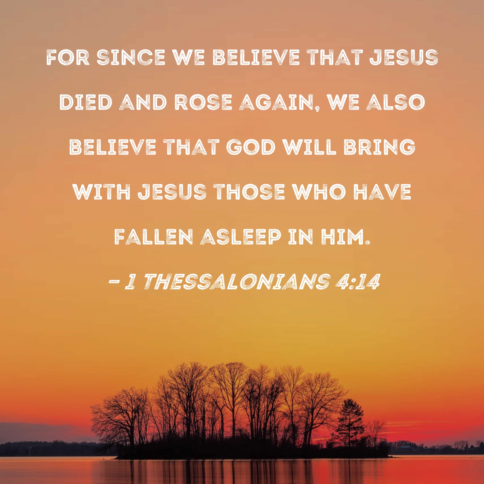 1 Thessalonians 4:14 For since we believe that Jesus died and rose again, we also believe that God will bring with Jesus those who have fallen asleep in Him.