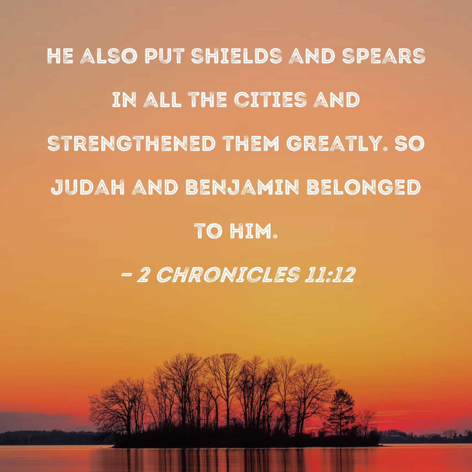 2 Chronicles 11:12 He also put shields and spears in all the cities and strengthened them greatly. So Judah and Benjamin belonged to him.