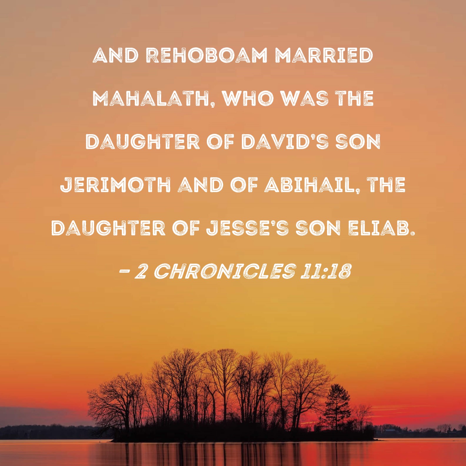 2 Chronicles 11:18 And Rehoboam married Mahalath, who was the daughter of David's son Jerimoth and of Abihail, the daughter of Jesse's son Eliab.