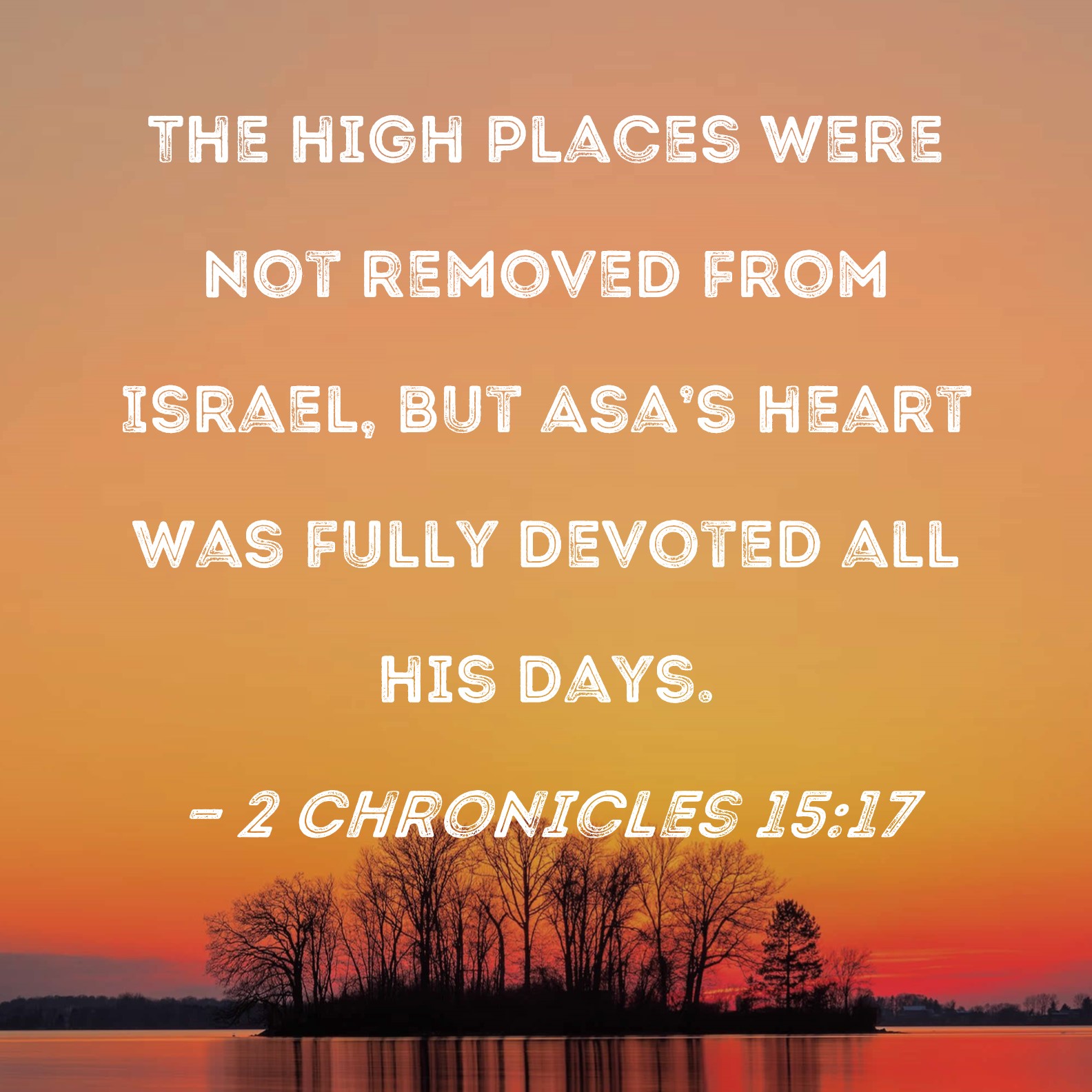 2 Chronicles 15:17 The high places were not removed from Israel, but Asa's heart was fully devoted all his days.