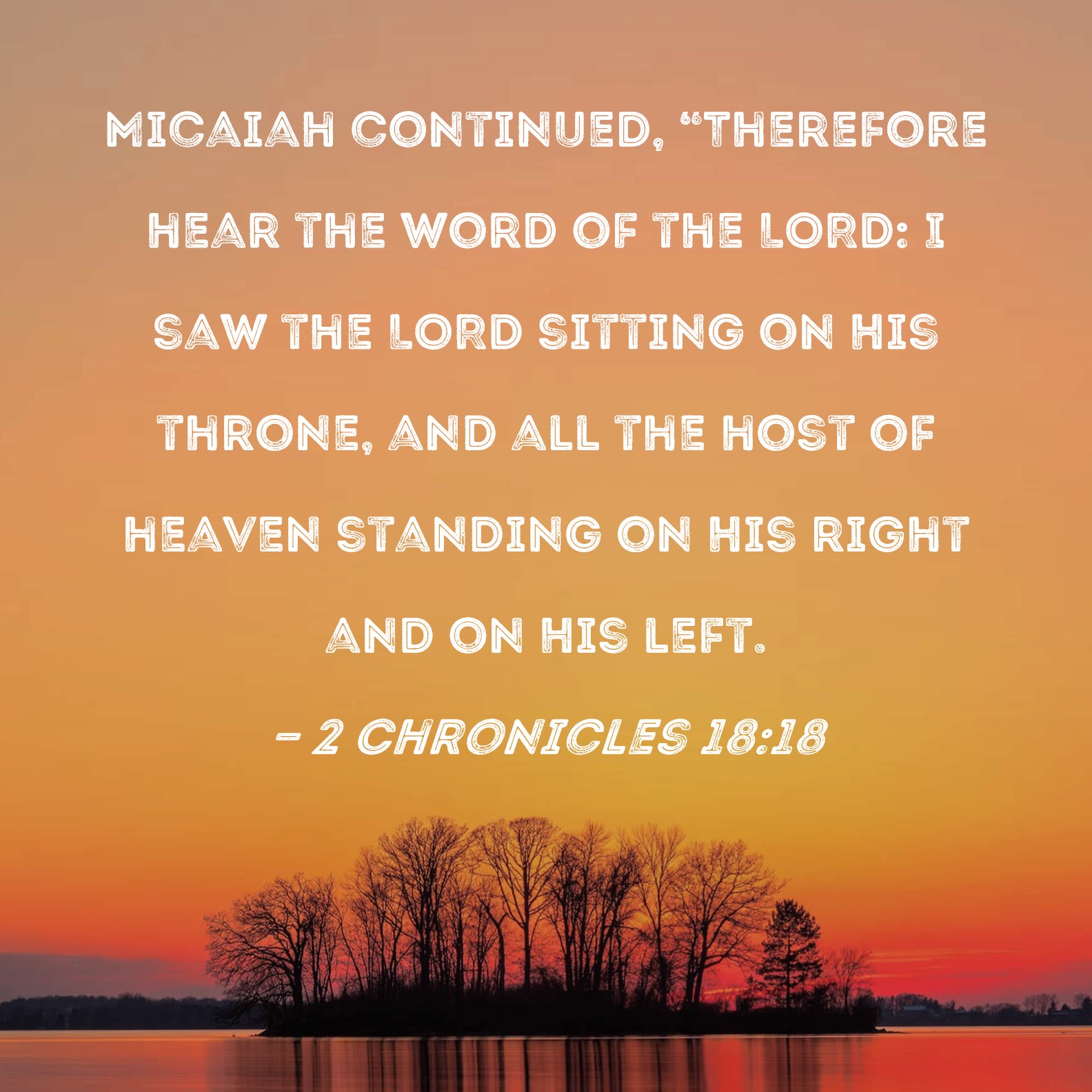 2 Chronicles 18:18 Micaiah continued, "Therefore hear the word of the LORD: I saw the LORD sitting on His throne, and all the host of heaven standing on His right and on His left.