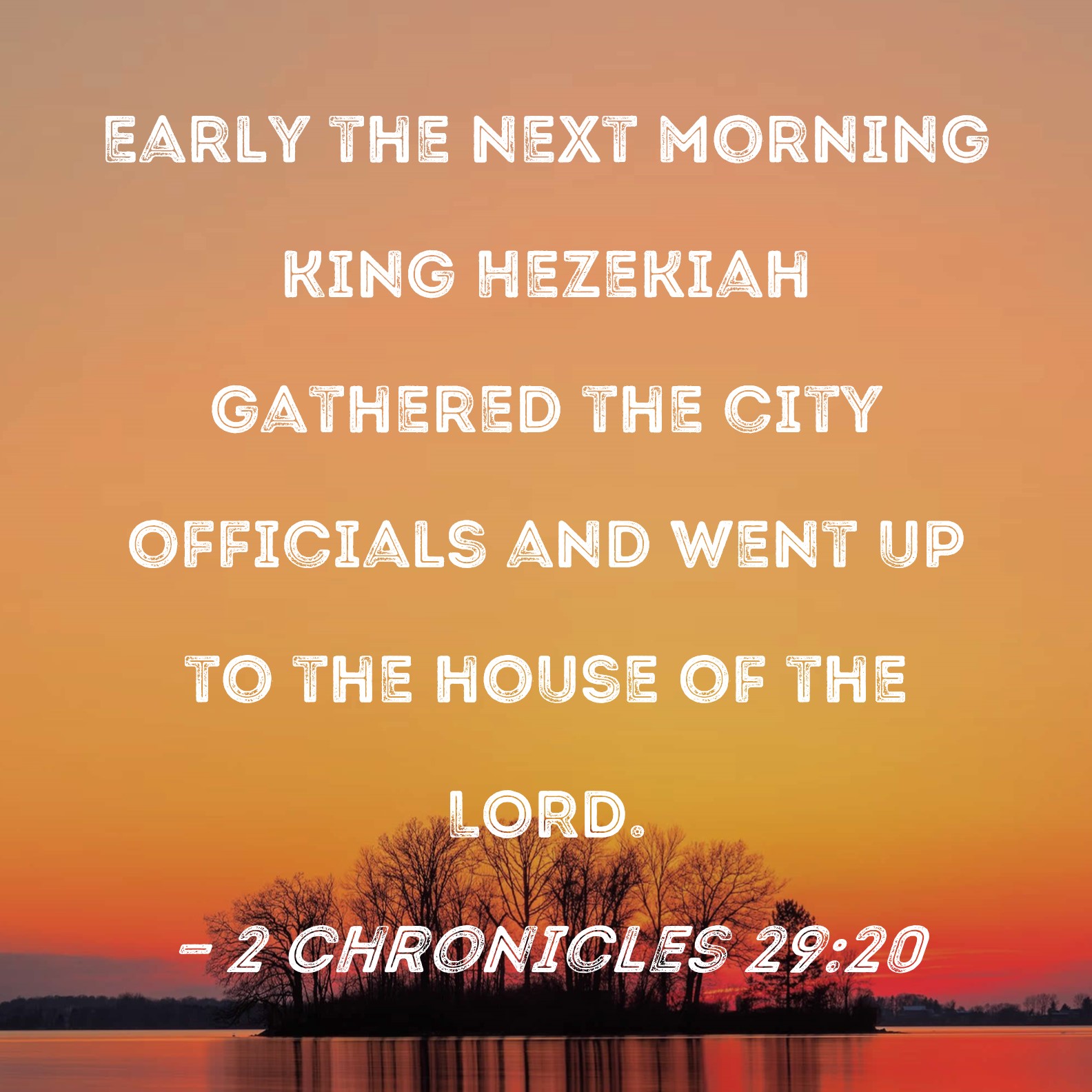 2 Chronicles 29:20 Early the next morning King Hezekiah gathered the city officials and went up to the house of the LORD.