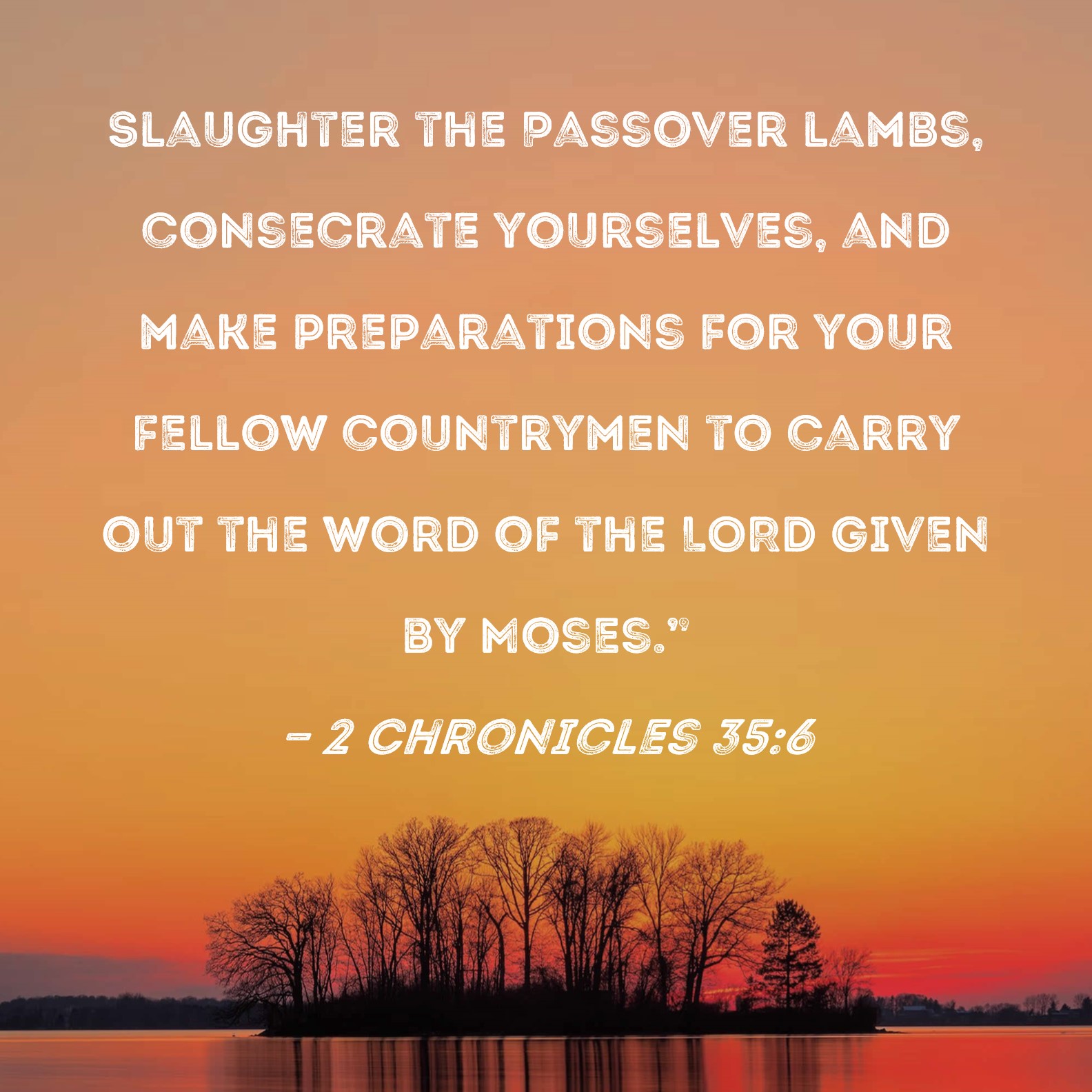 2 Chronicles 35:6 Slaughter the Passover lambs, consecrate yourselves, and make preparations for your fellow countrymen to carry out the word of the LORD given by Moses."