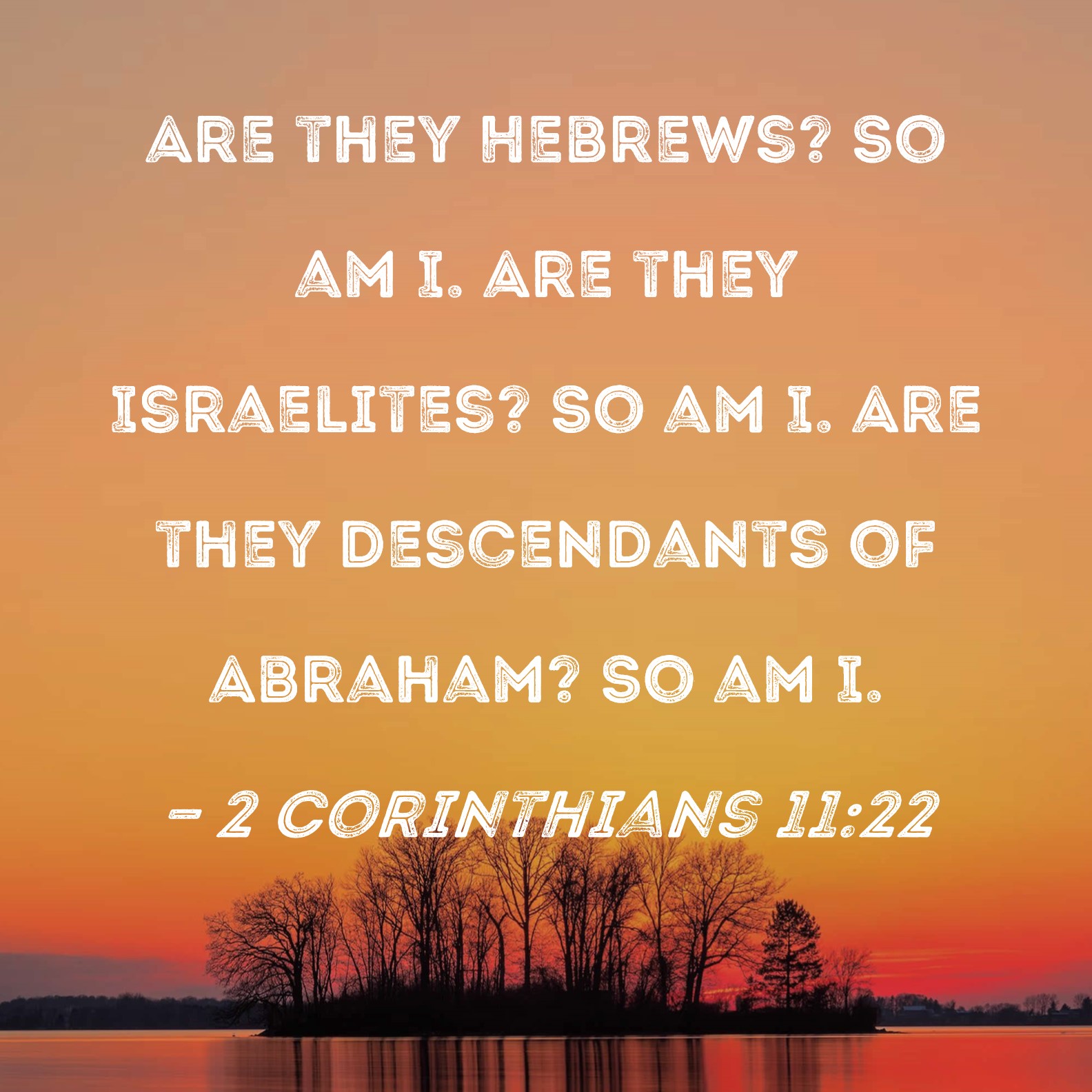 2 Corinthians 11:22 Are they Hebrews? So am I. Are they Israelites? So am I. Are they descendants of Abraham? So am I.