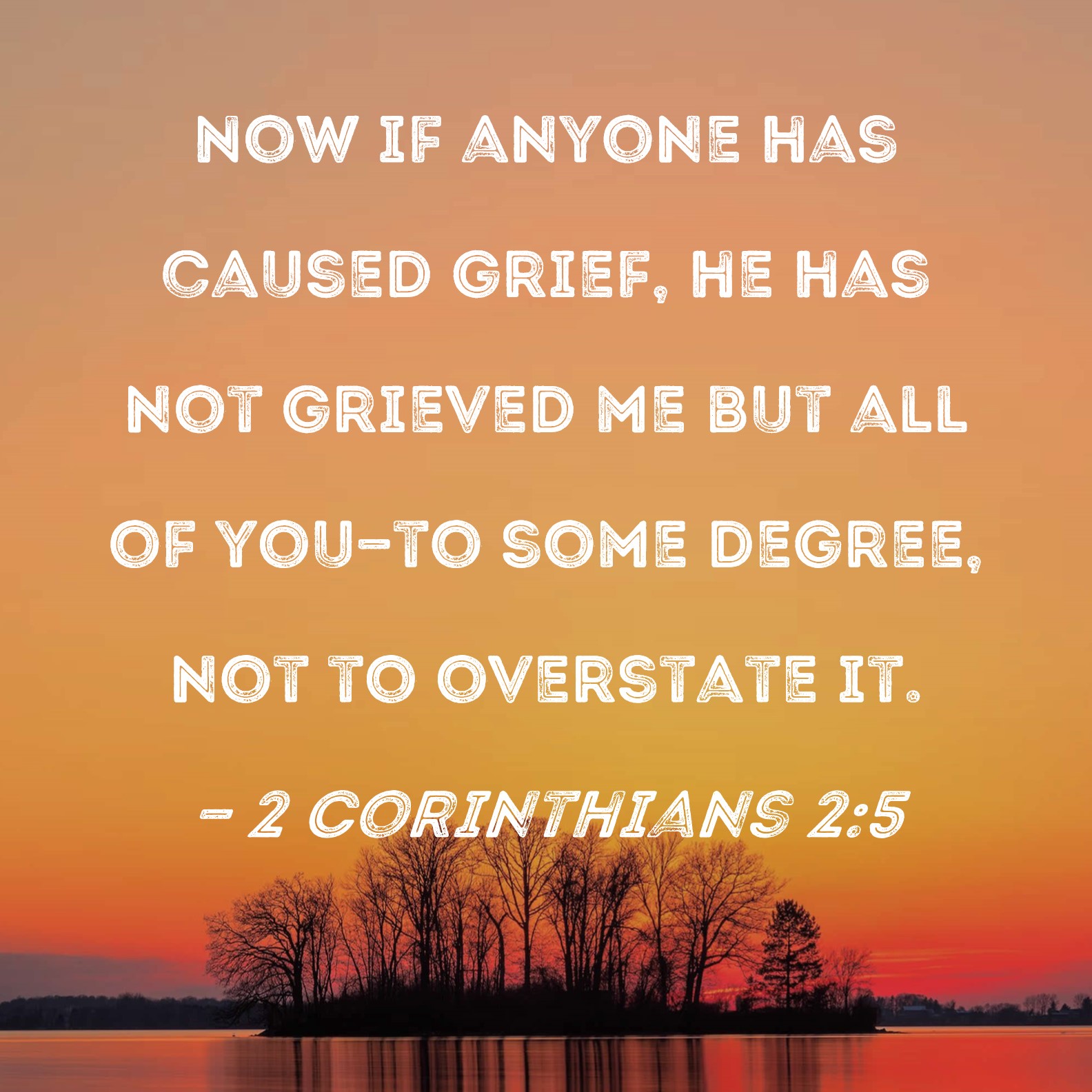 2 Corinthians 2:5 Now if anyone has caused grief, he has not grieved me but all of you--to some degree, not to overstate it.