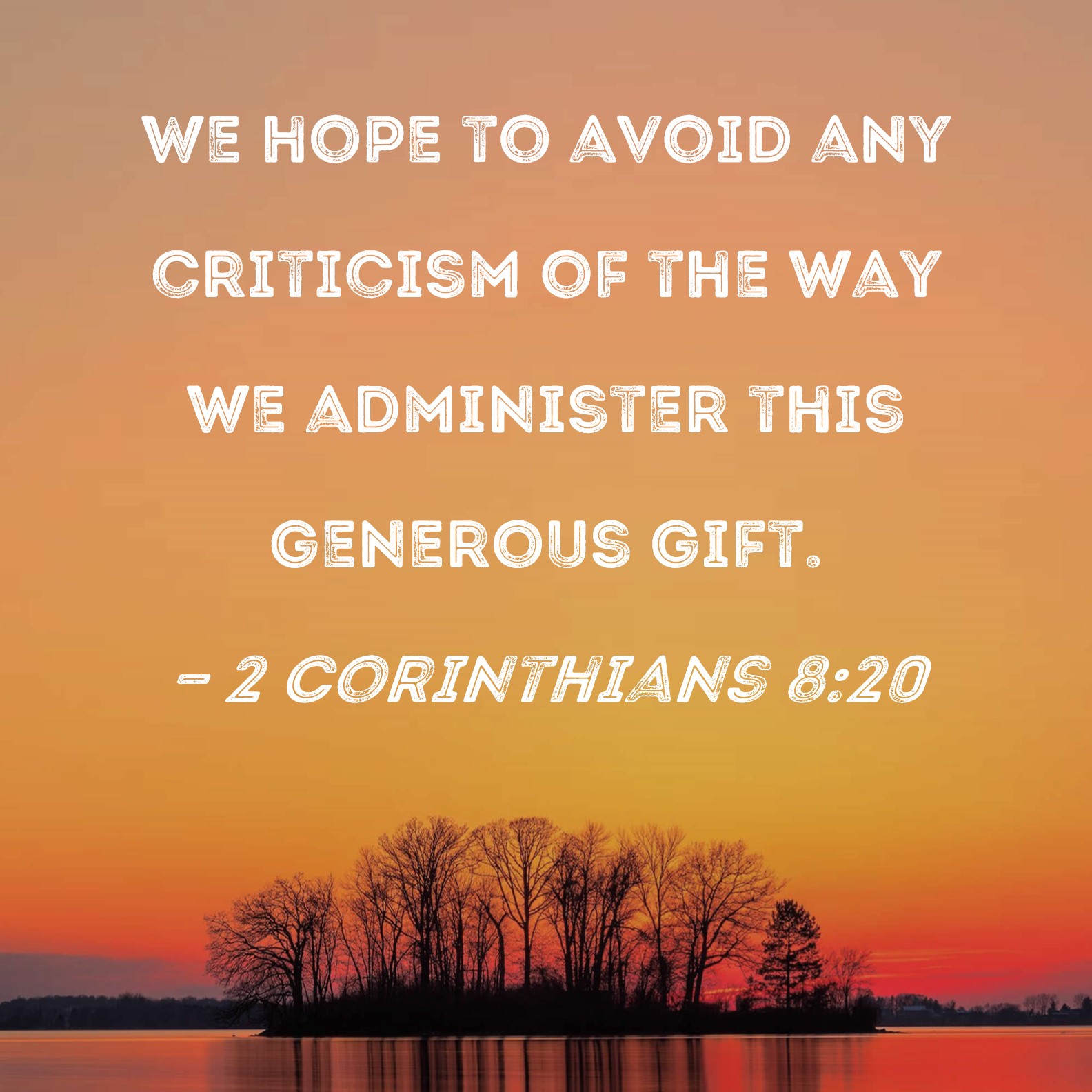 2 Corinthians 8:20 We hope to avoid any criticism of the way we administer this generous gift.