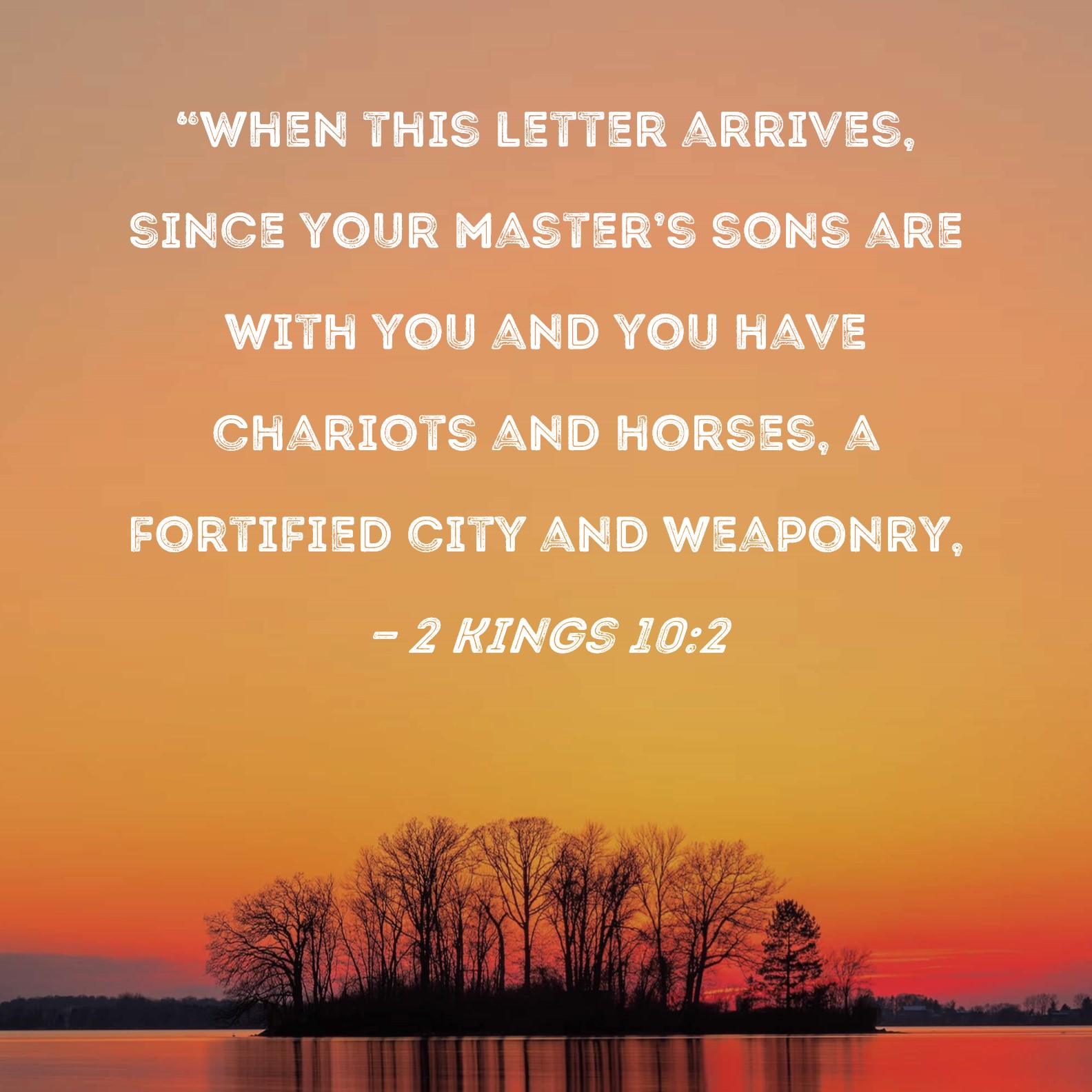 2 Kings 10:2 "When this letter arrives, since your master's sons are with you and you have chariots and horses, a fortified city and weaponry,